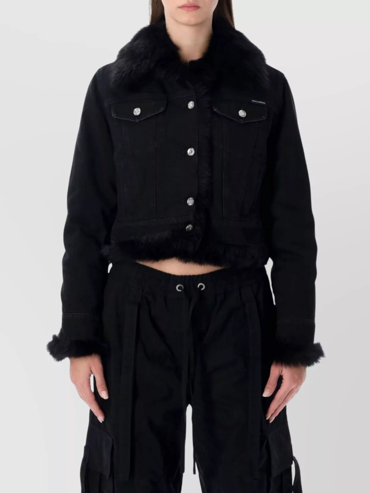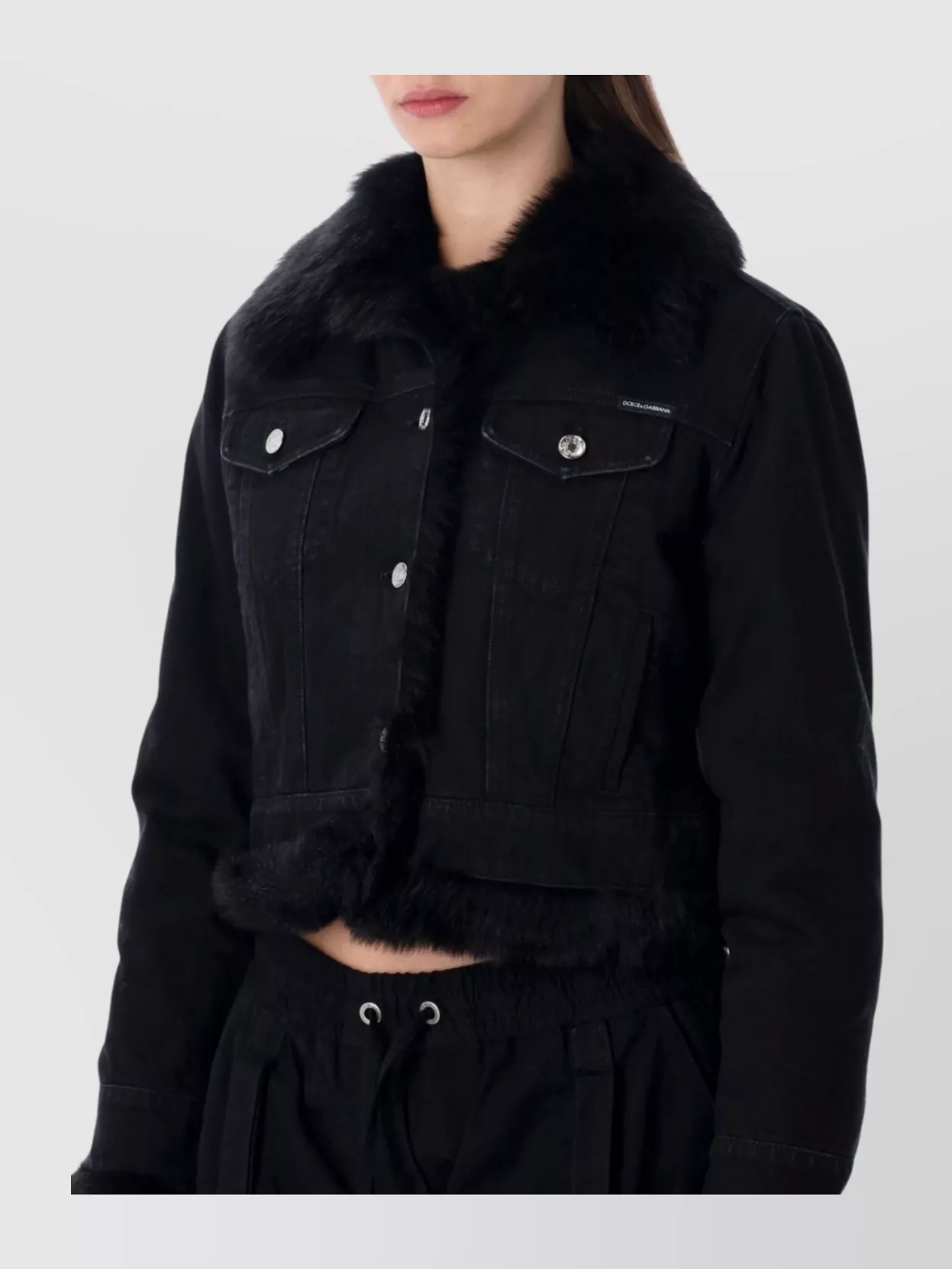 Dolce&Gabbana cropped denim jacket fur cuffs