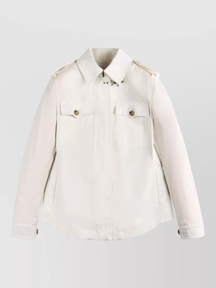 Fay cotton blend shirt jacket epaulettes pockets vent