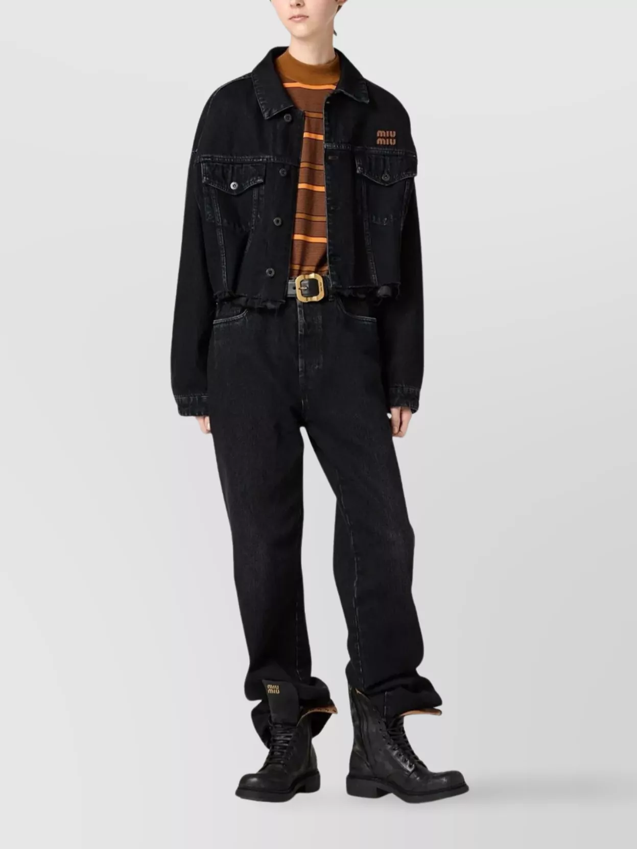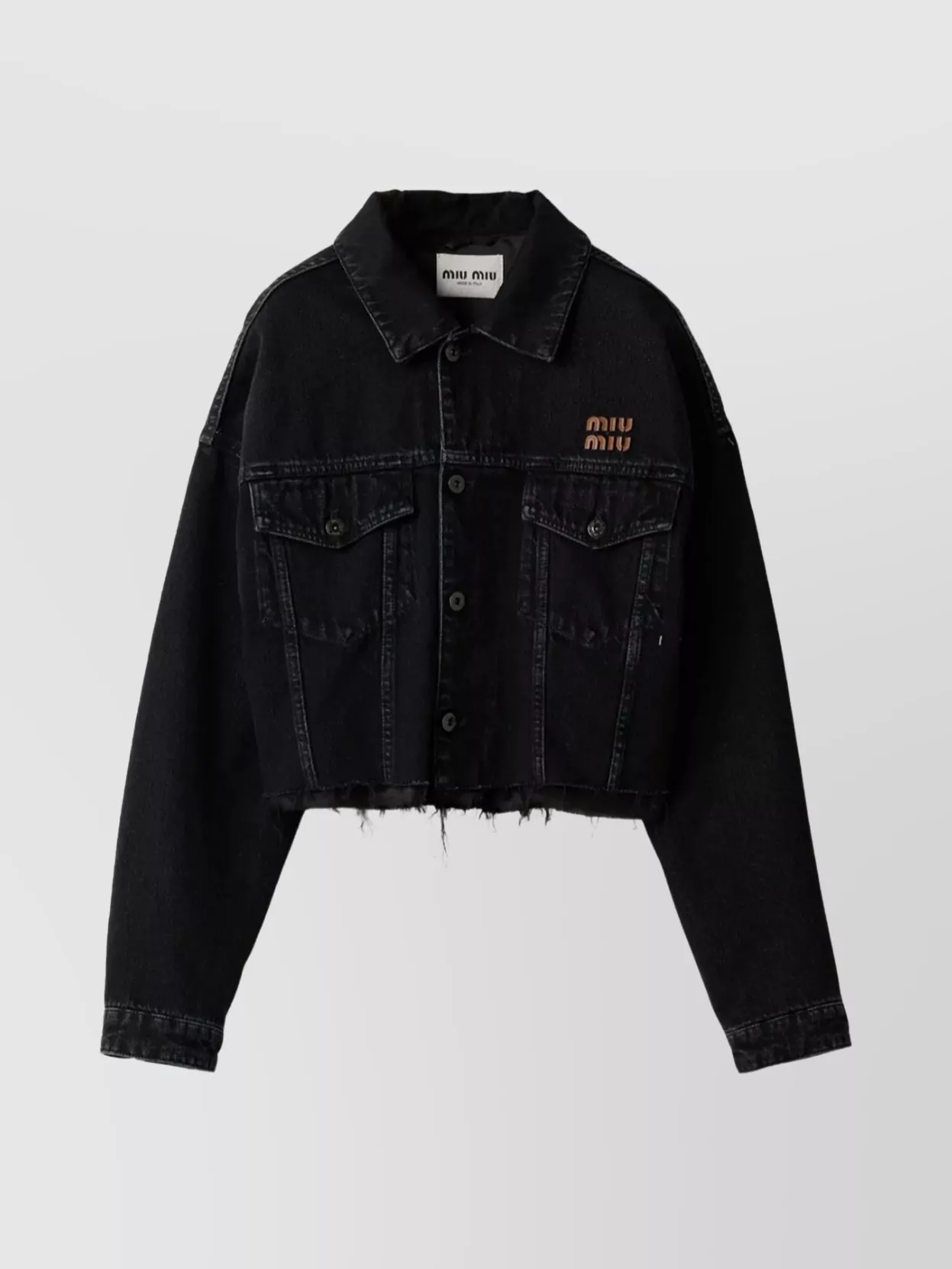 Miu Miu cropped jacket with long sleeves and frayed hem
