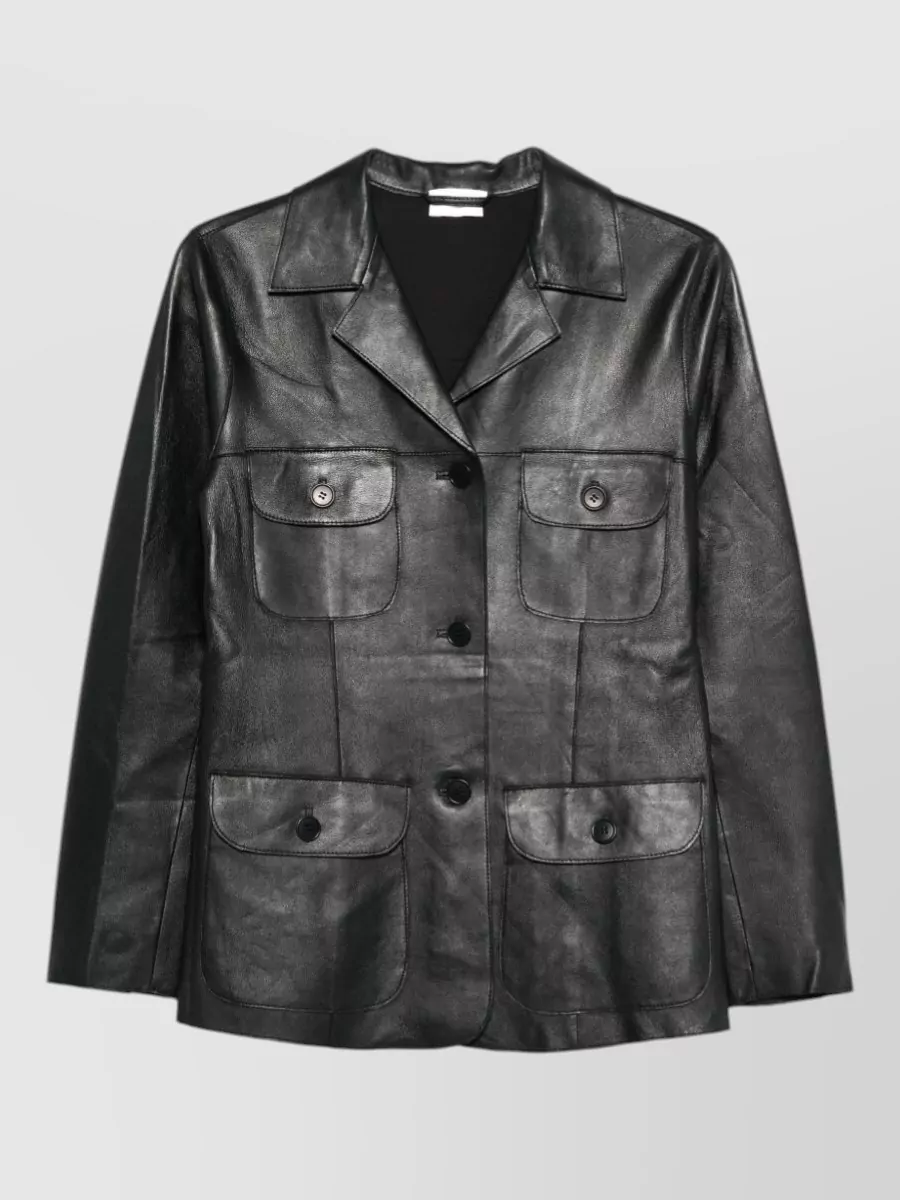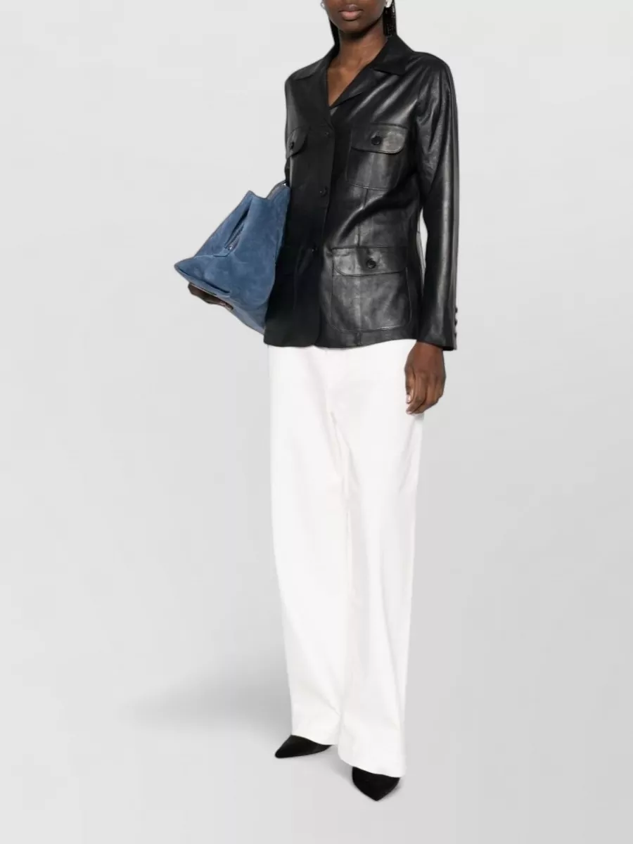 leather jacket long sleeves notched lapels