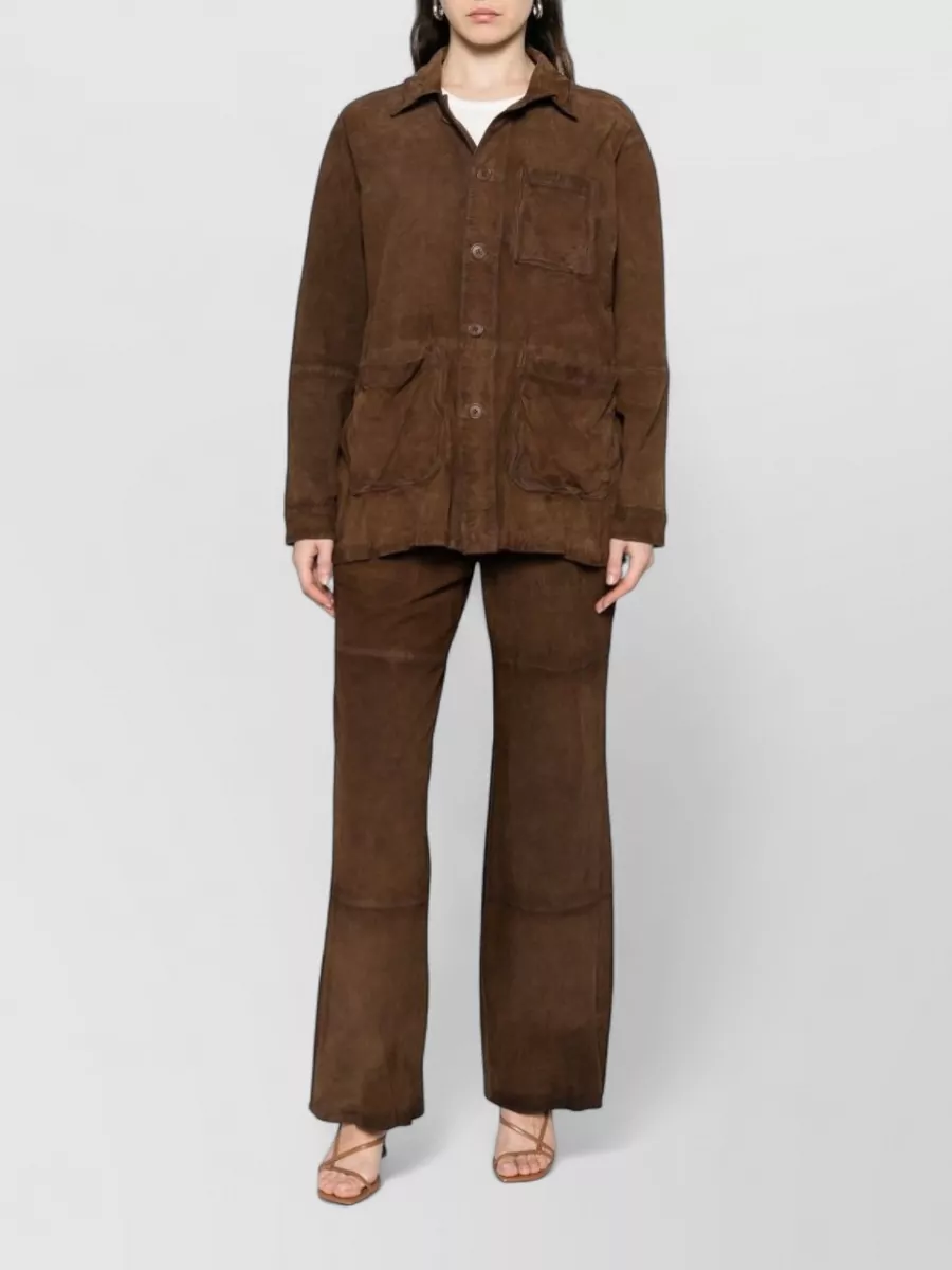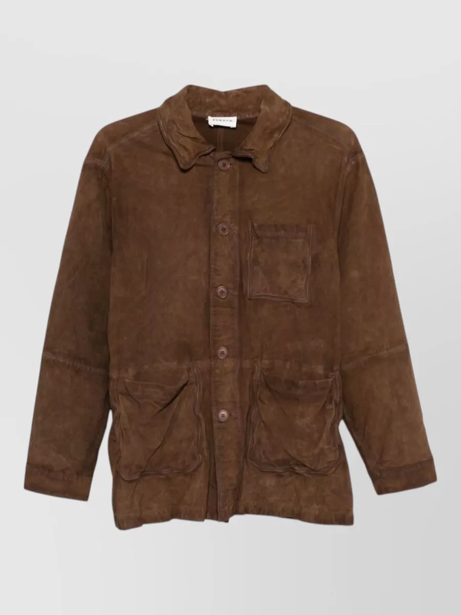 Parosh suede leather jacket long sleeves collar