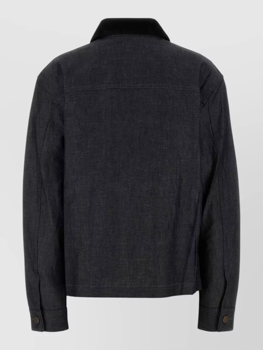 Prada denim shirt chest pockets collared neck