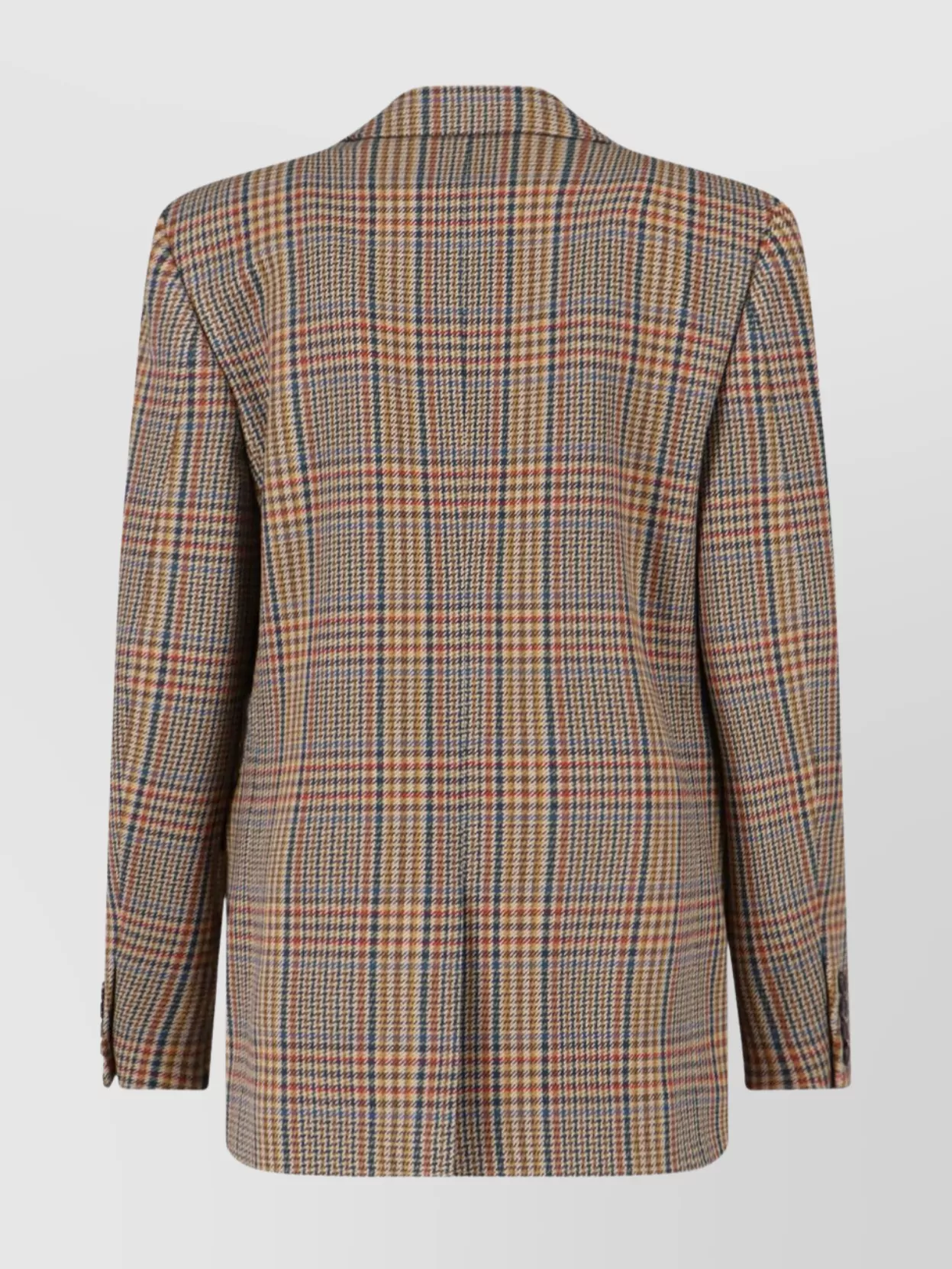 wool check single-breasted jacket with notched collar