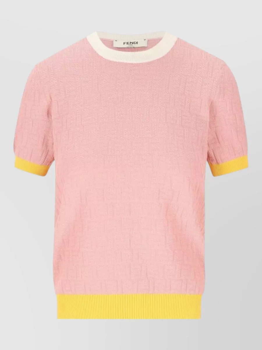 Fendi ribbed jacquard short-sleeve crew-neck knitted top