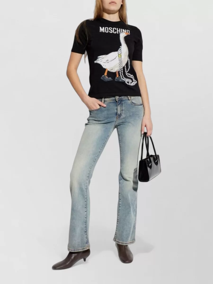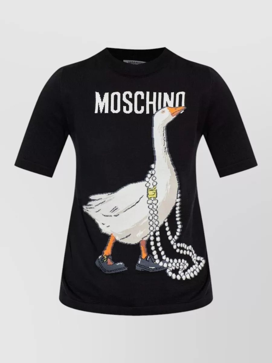 Moschino short sleeve crew neck knit top goose
