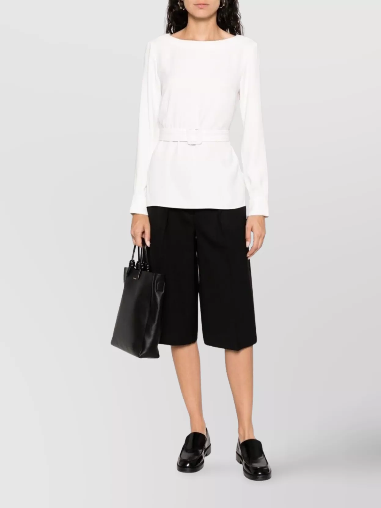 knitwear top with belted waist and long sleeves