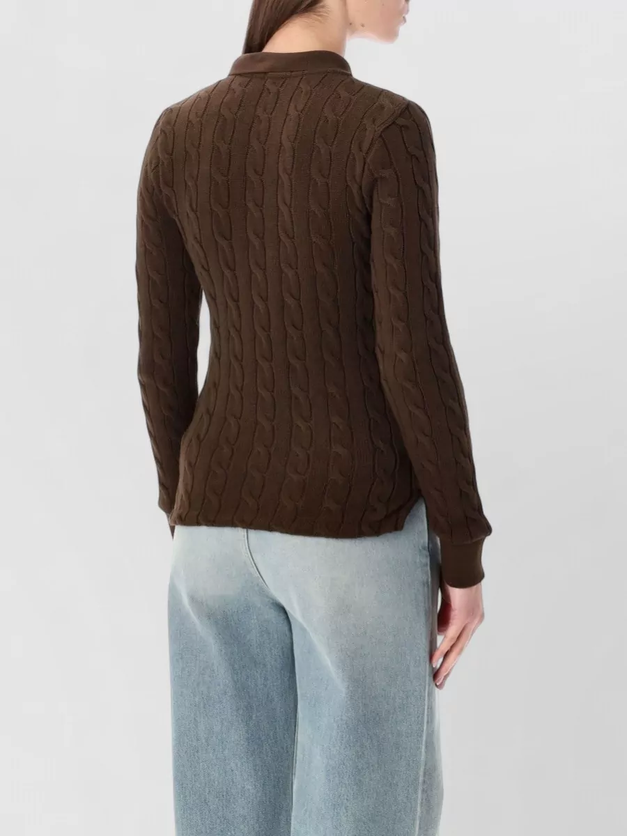 long sleeve cable knit polo sweater