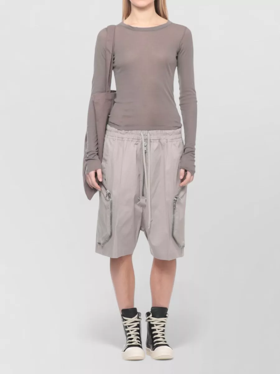 Rick Owens wool ribbed cropped cowl neck long sleeve top