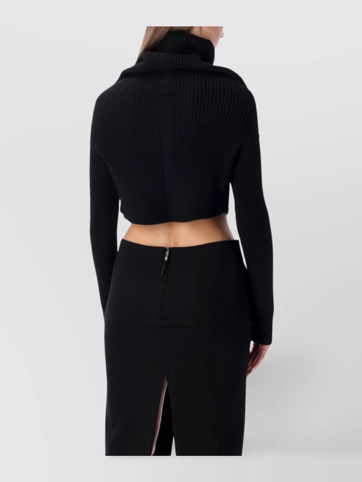 high neck knitwear back slit