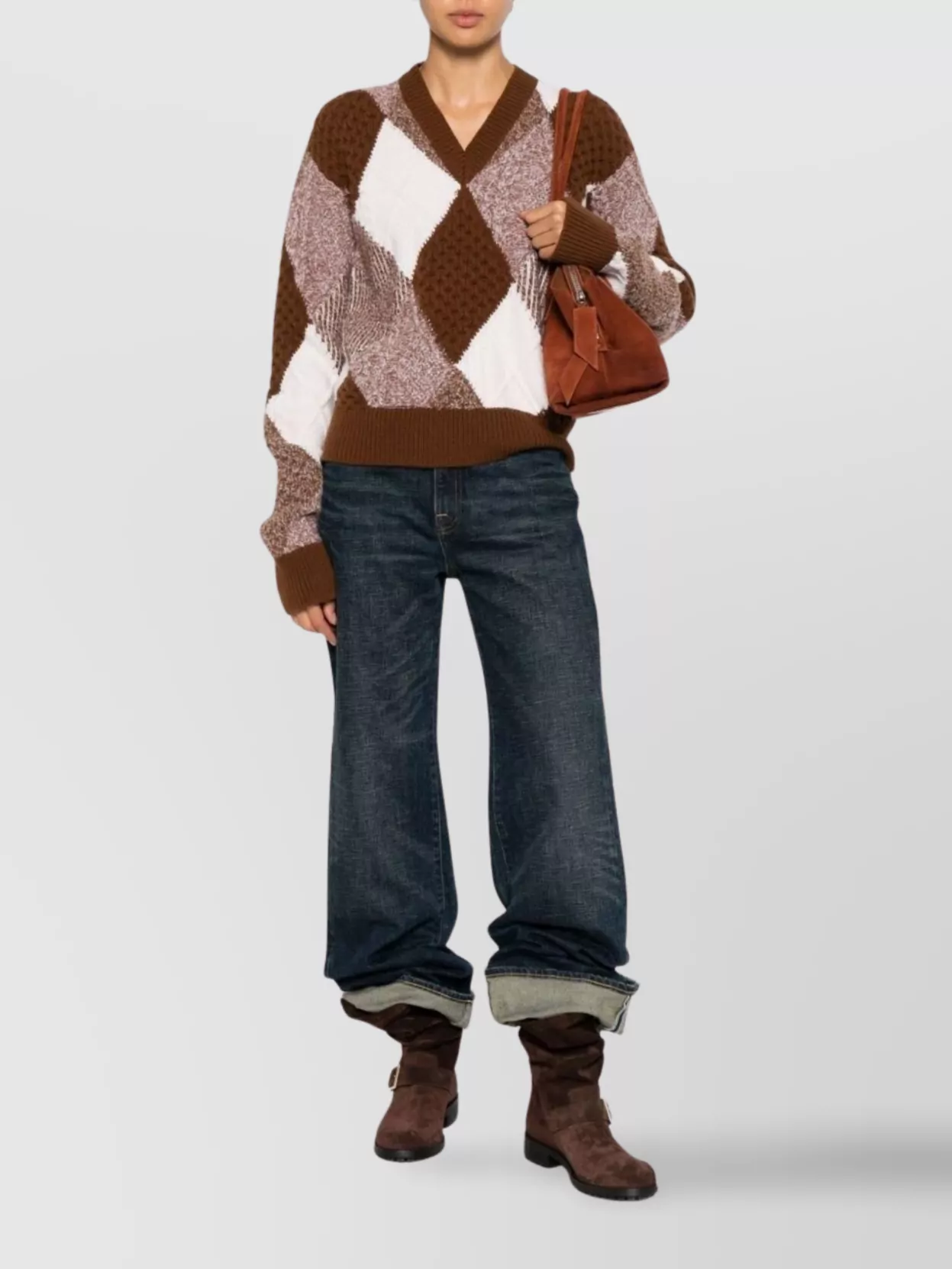 Stella Mccartney v-neck argyle knit long sleeve jumper
