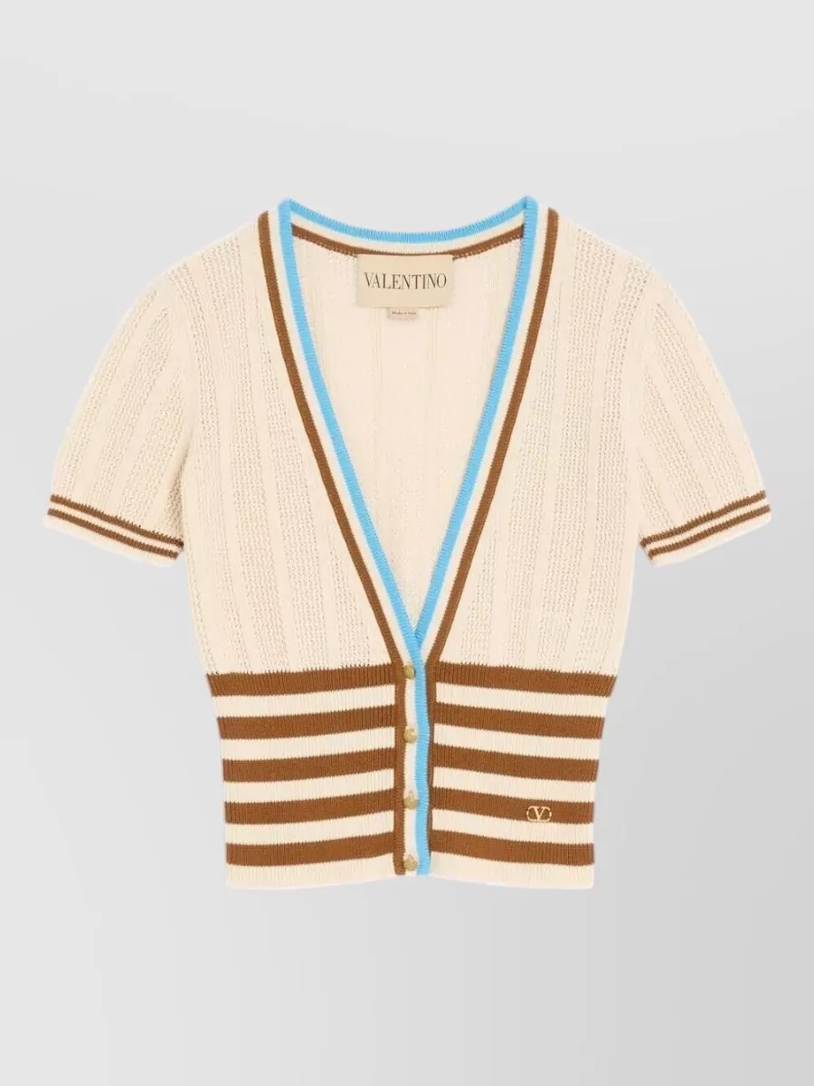 Valentino Garavani cropped knit cardigan short sleeve stripes