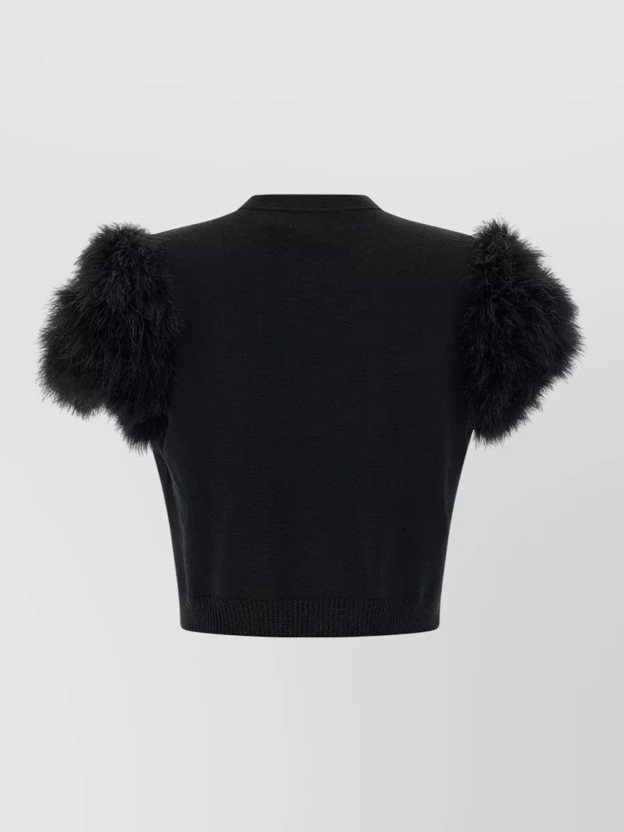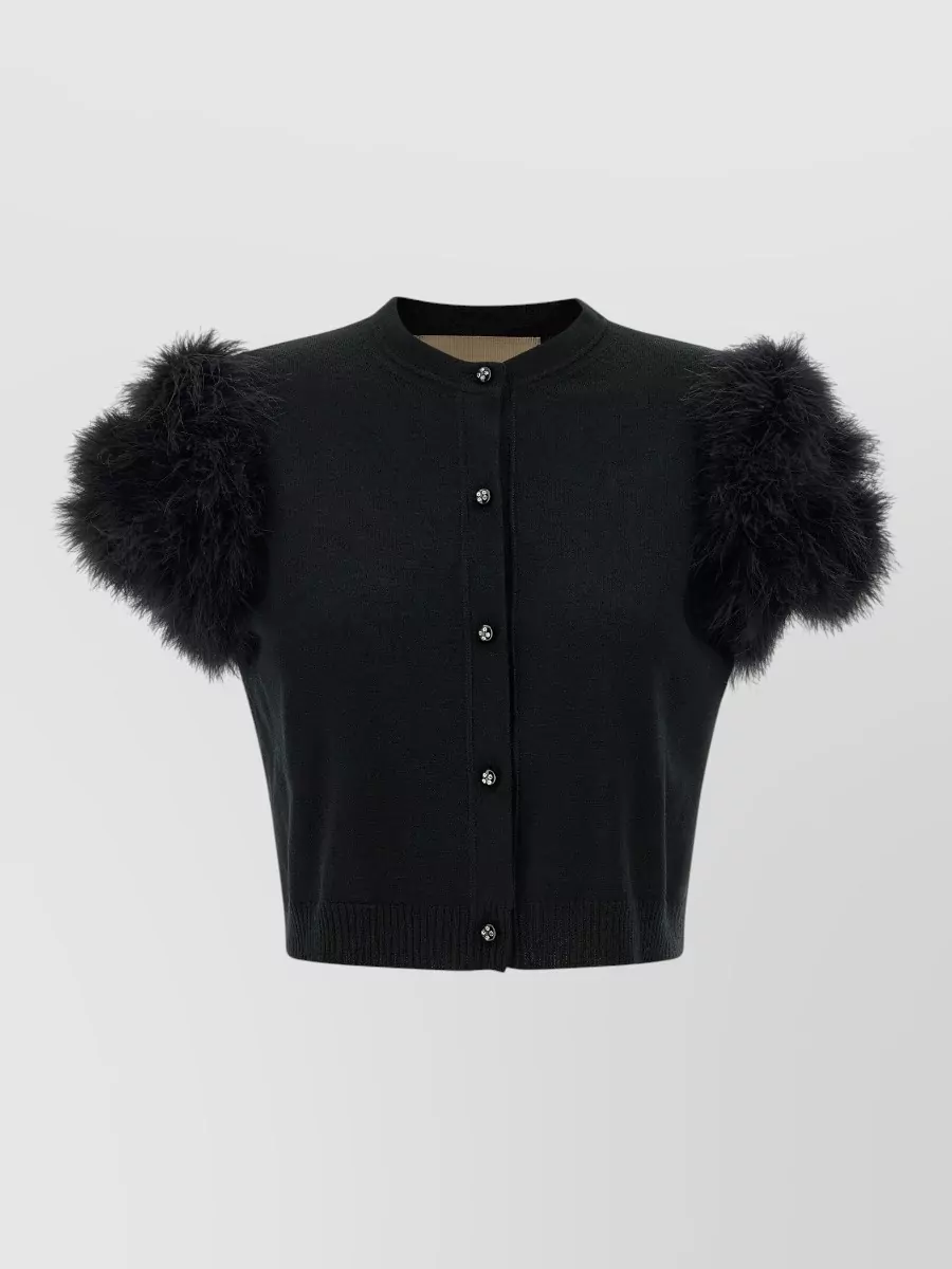 Valentino Garavani feather trim knit cardigan faux fur sleeves