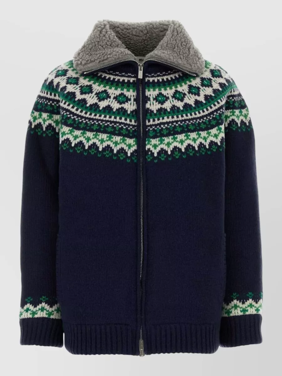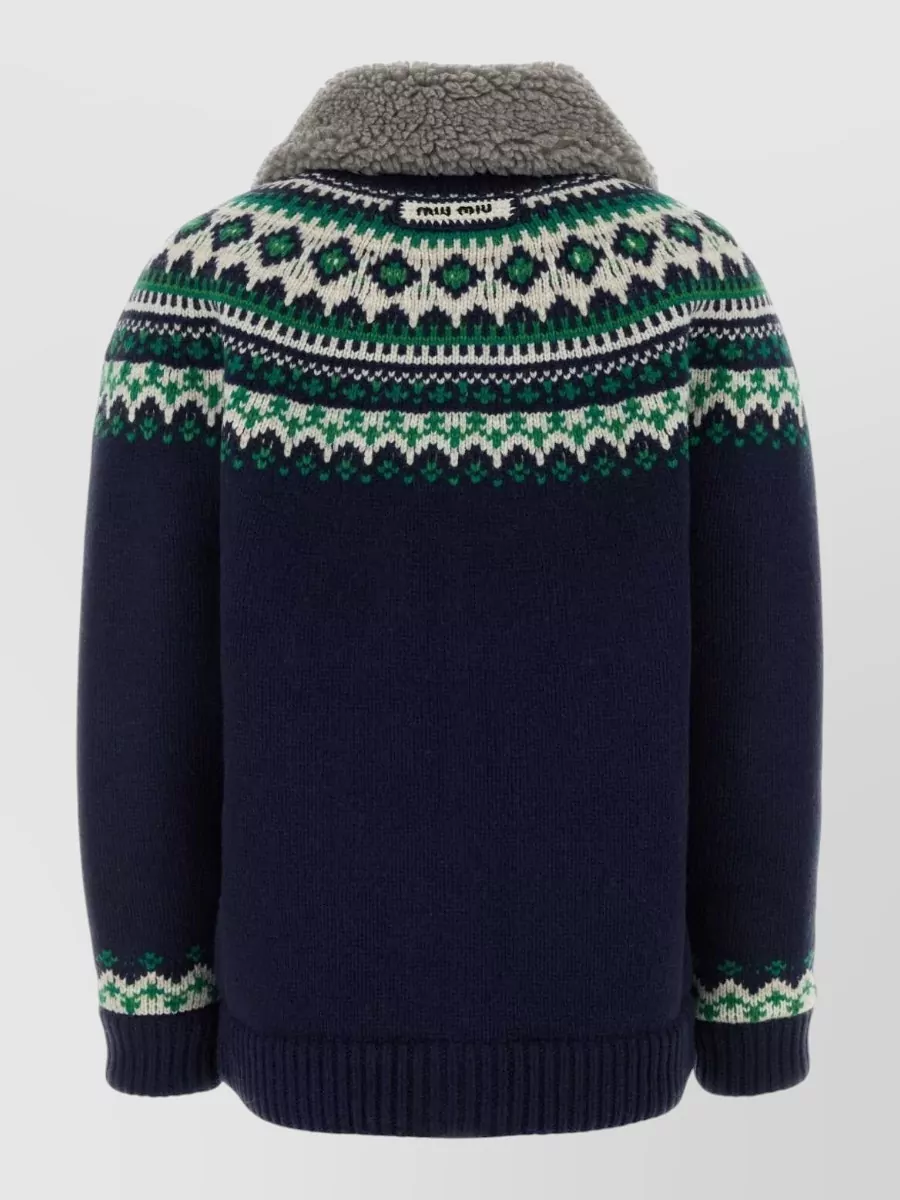 Miu Miu wool oversized cardigan high collar patterned