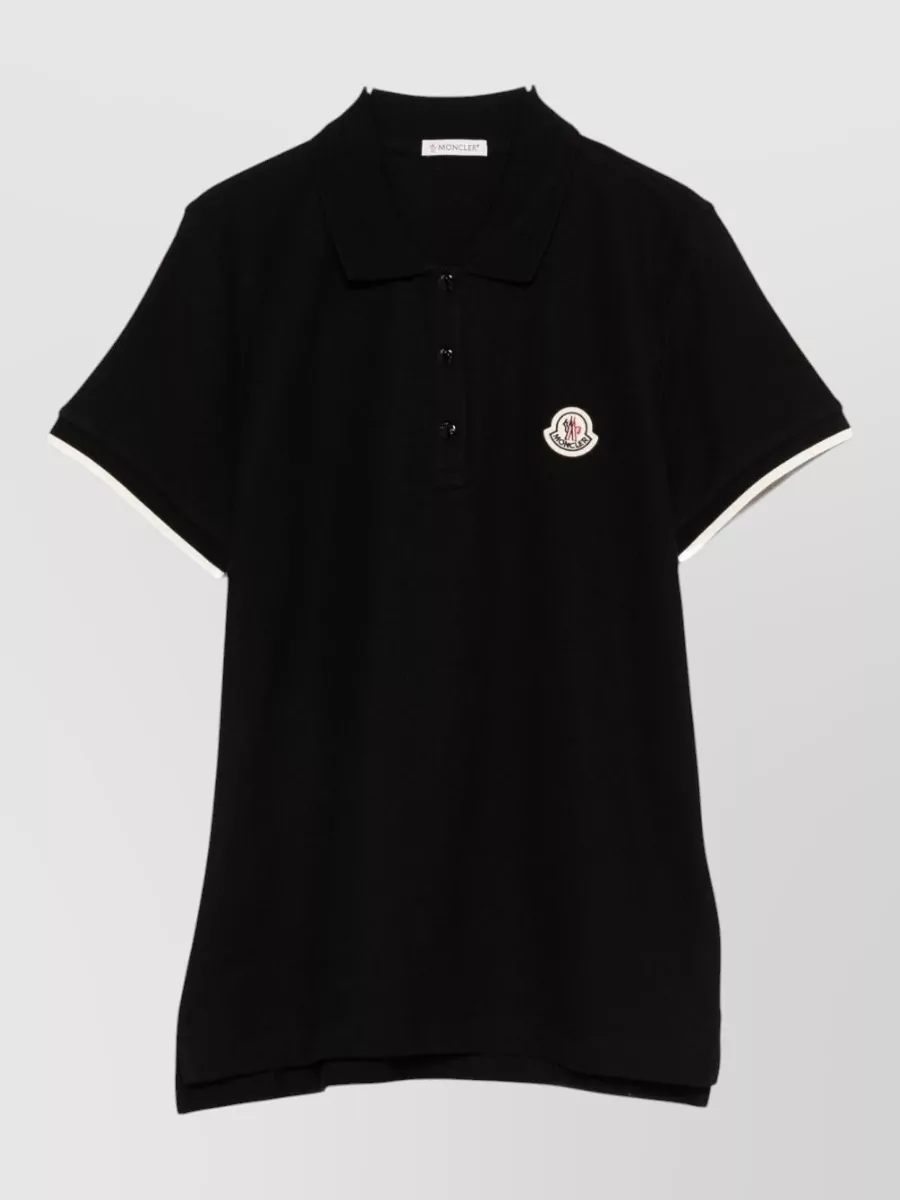 Moncler sleeved polo collar ribbed texture top