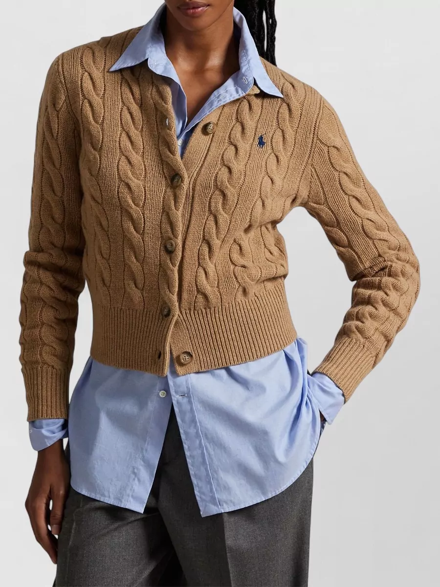 Ralph Lauren cable knit cardigan long sleeves ribbed trims