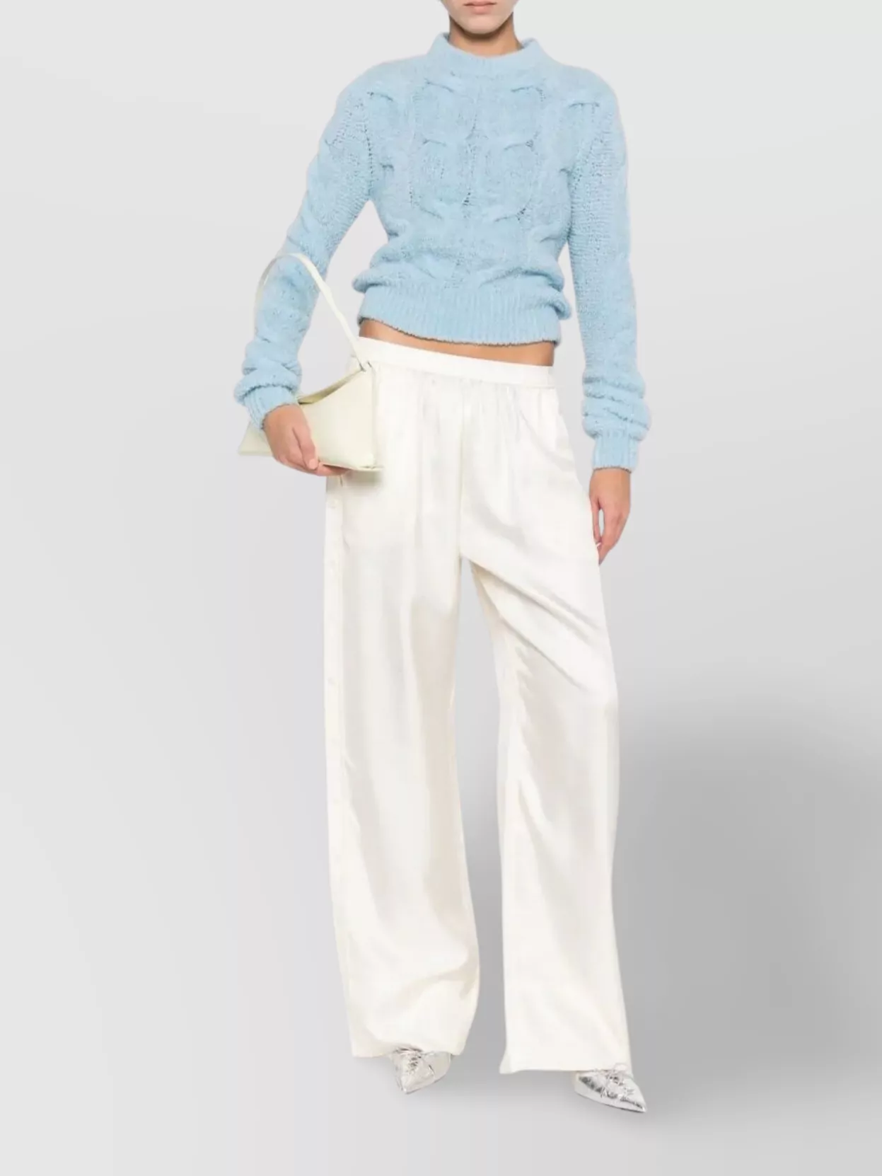 textured cable knit cropped crewneck sweater