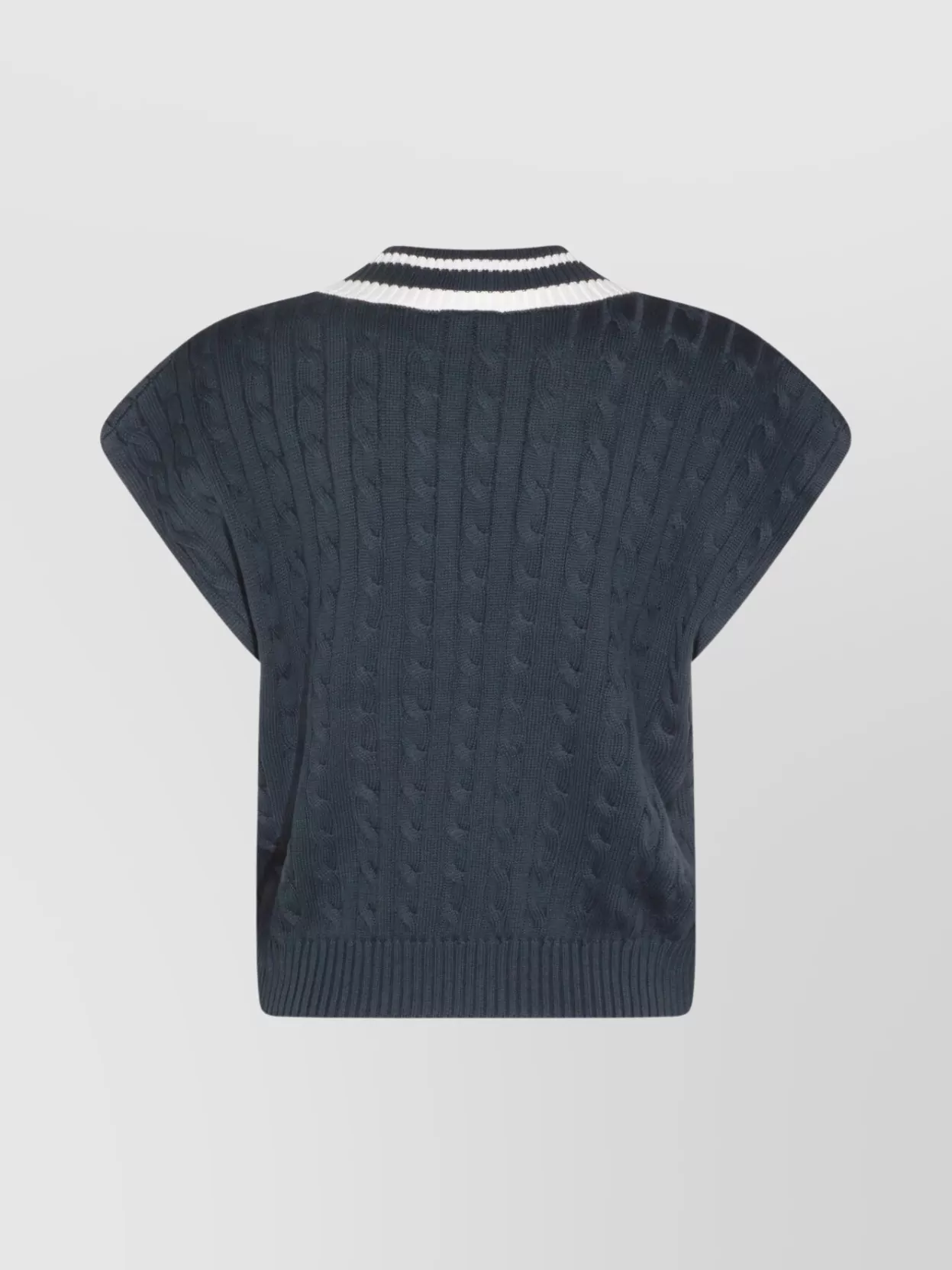 cable knit v-neck contrast trim