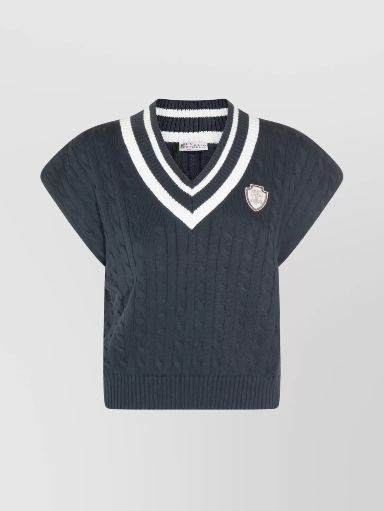 Brunello Cucinelli cable knit v-neck contrast trim