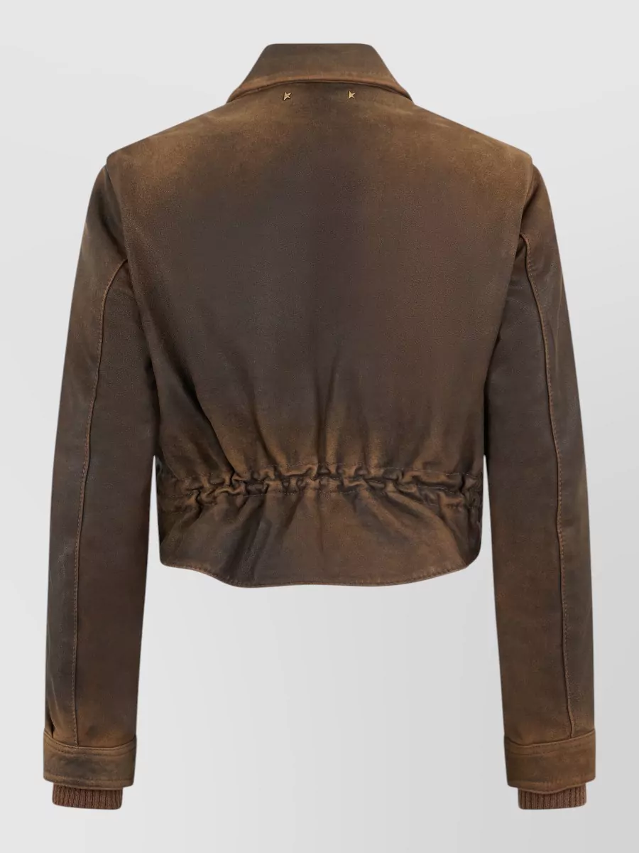 Golden Goose short leather jacket long sleeves collar