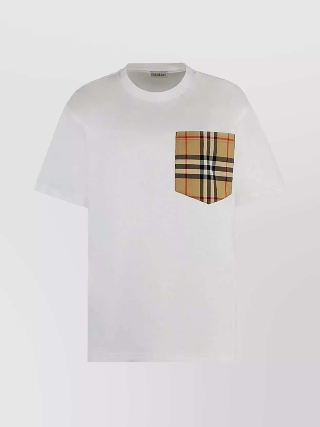 crew neck t shirt featuring checked pocket