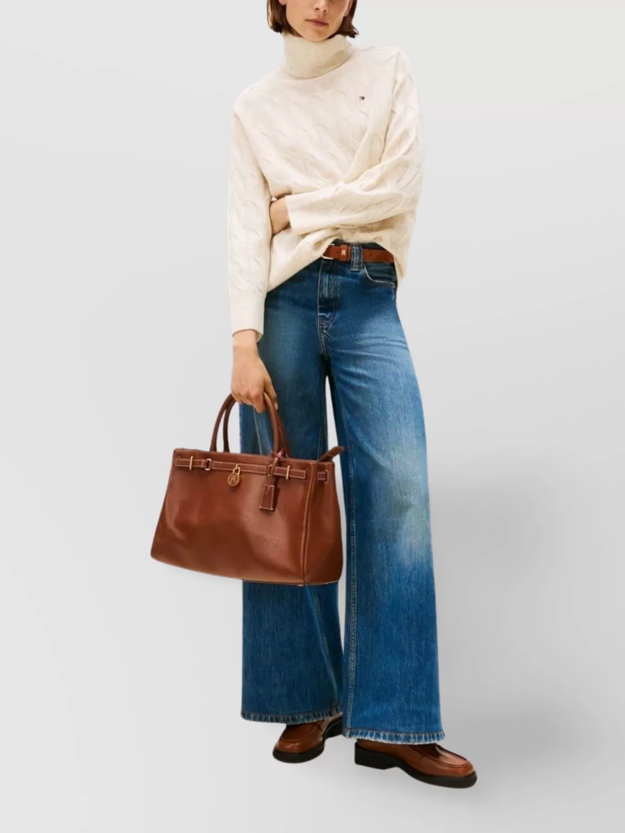 Tommy Hilfiger cable knit turtleneck wool pullover