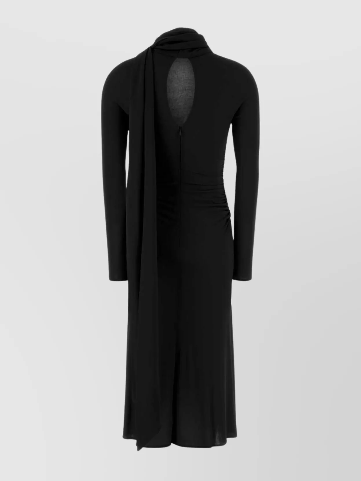midi dress with draped detail and keyhole back