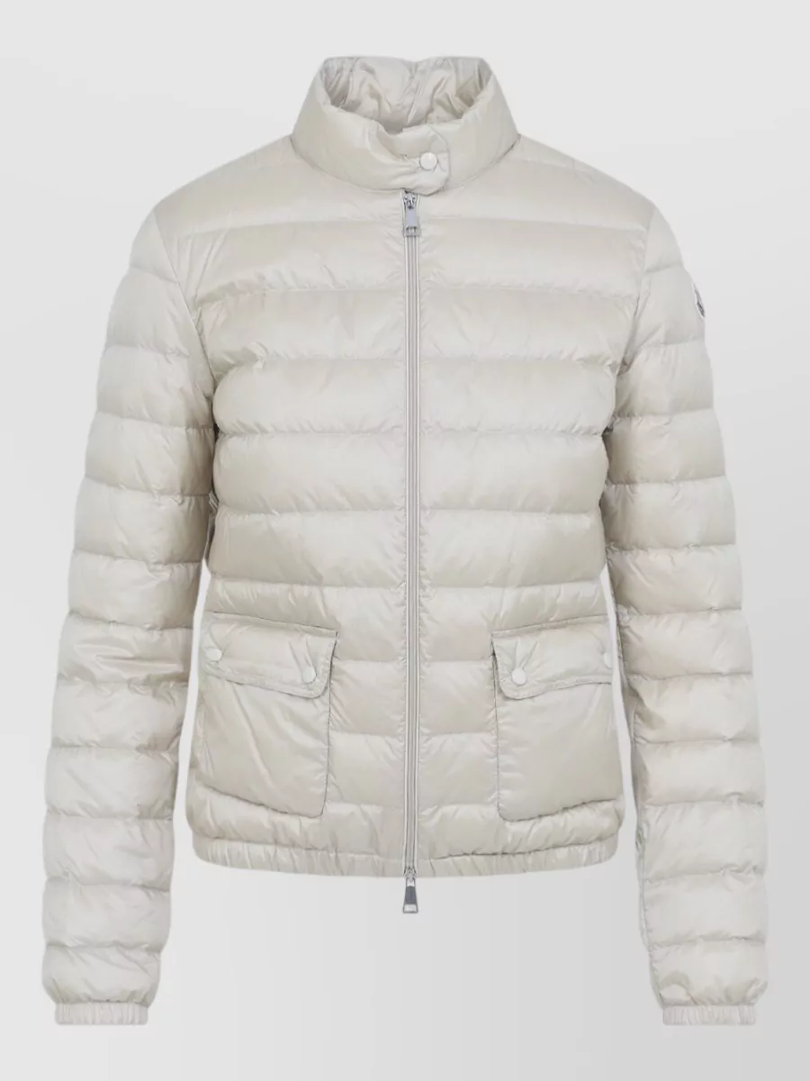 Slim fit through the body with a high collar and elasticated cuffs creating a close, insulated silhouette