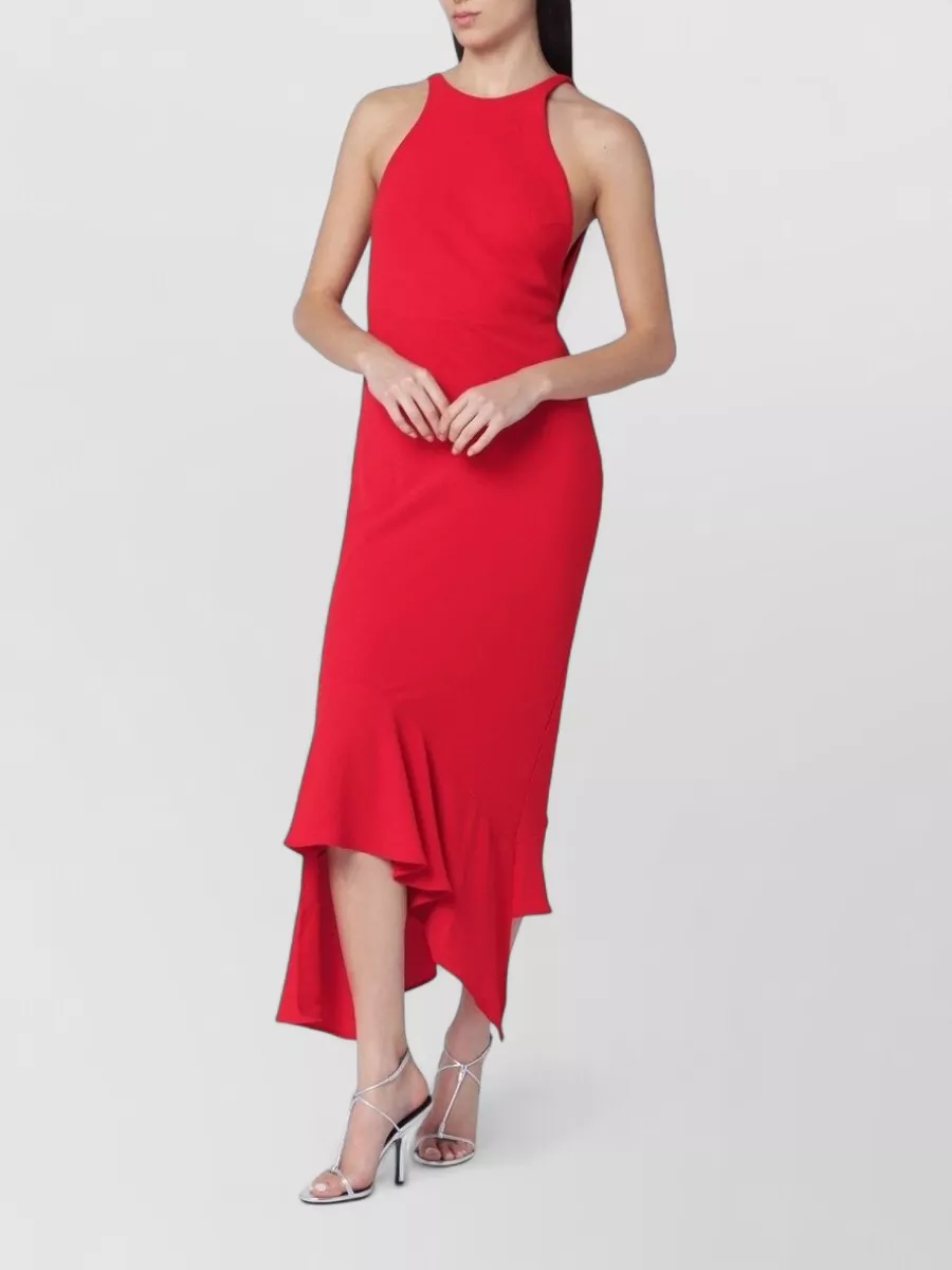 Fitted through the bust and waist with a closer fit over the hips and an asymmetric hemline