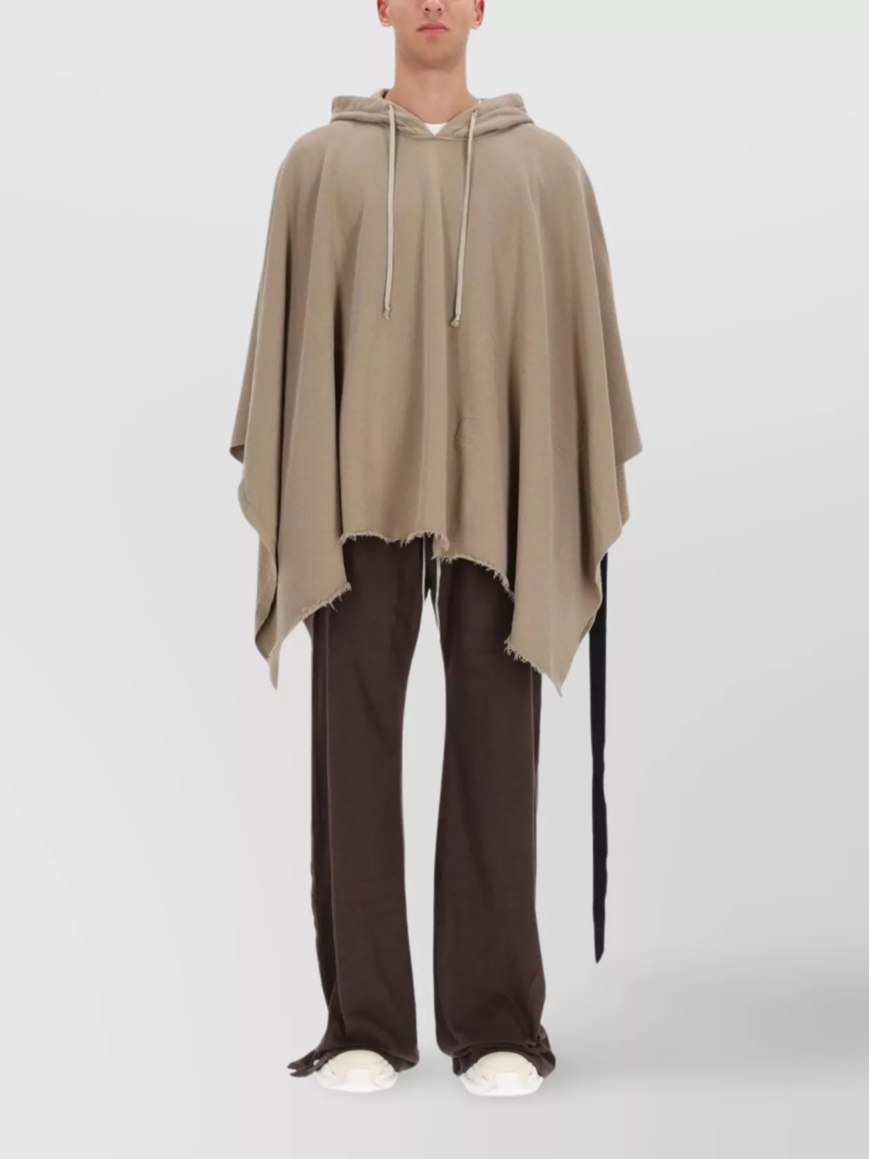 Asymmetric cape drawstring hooded coat