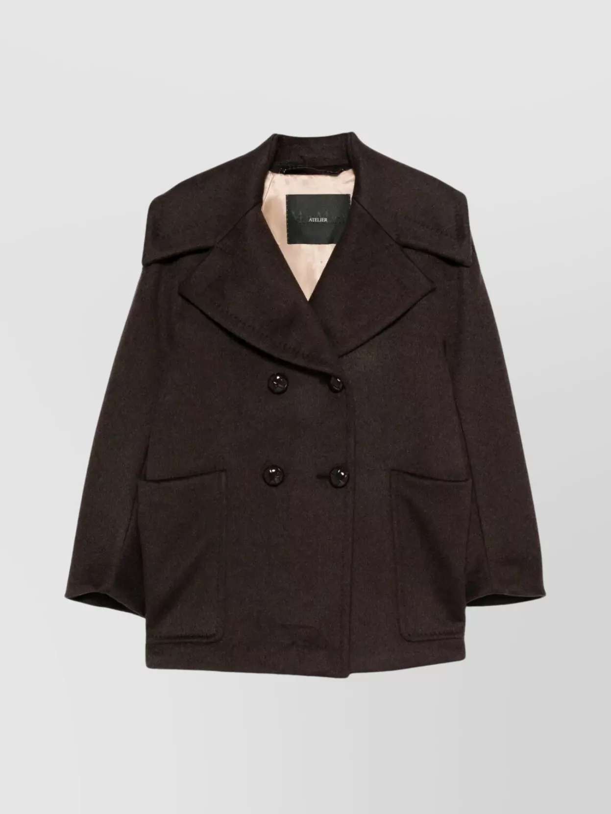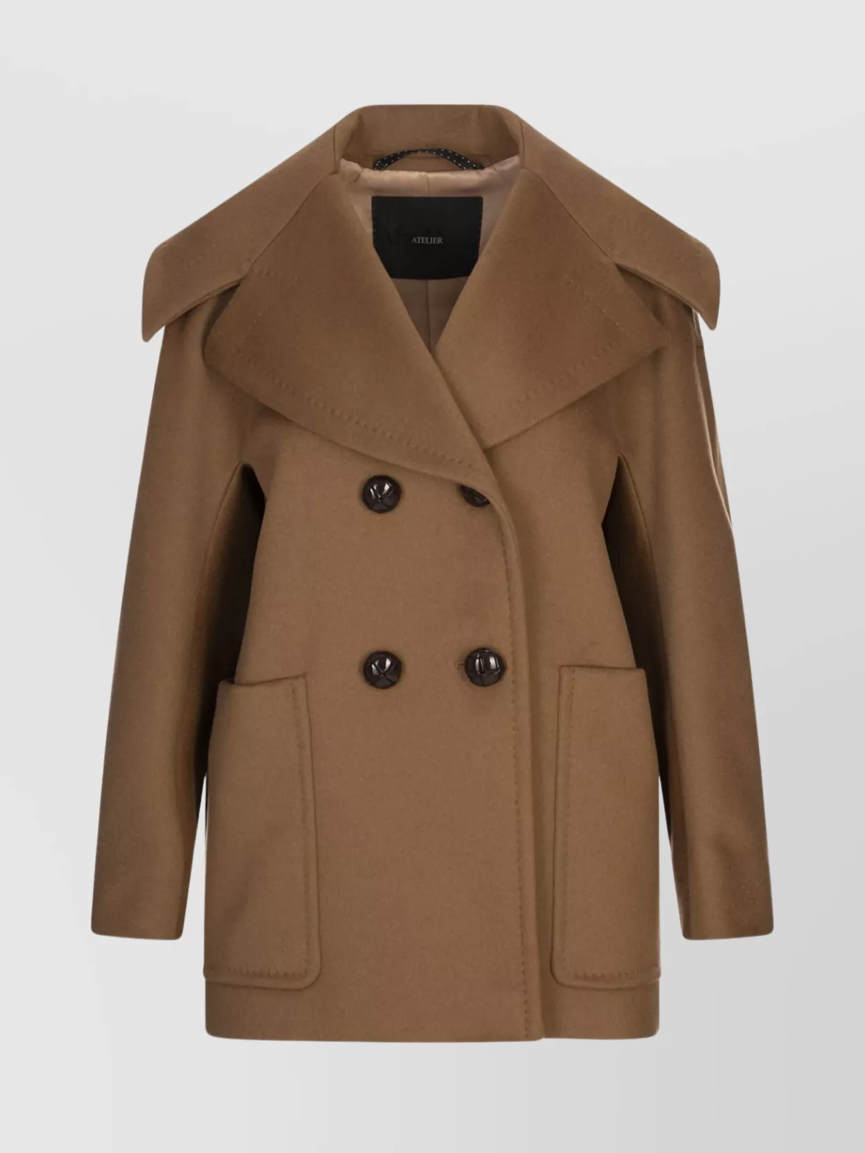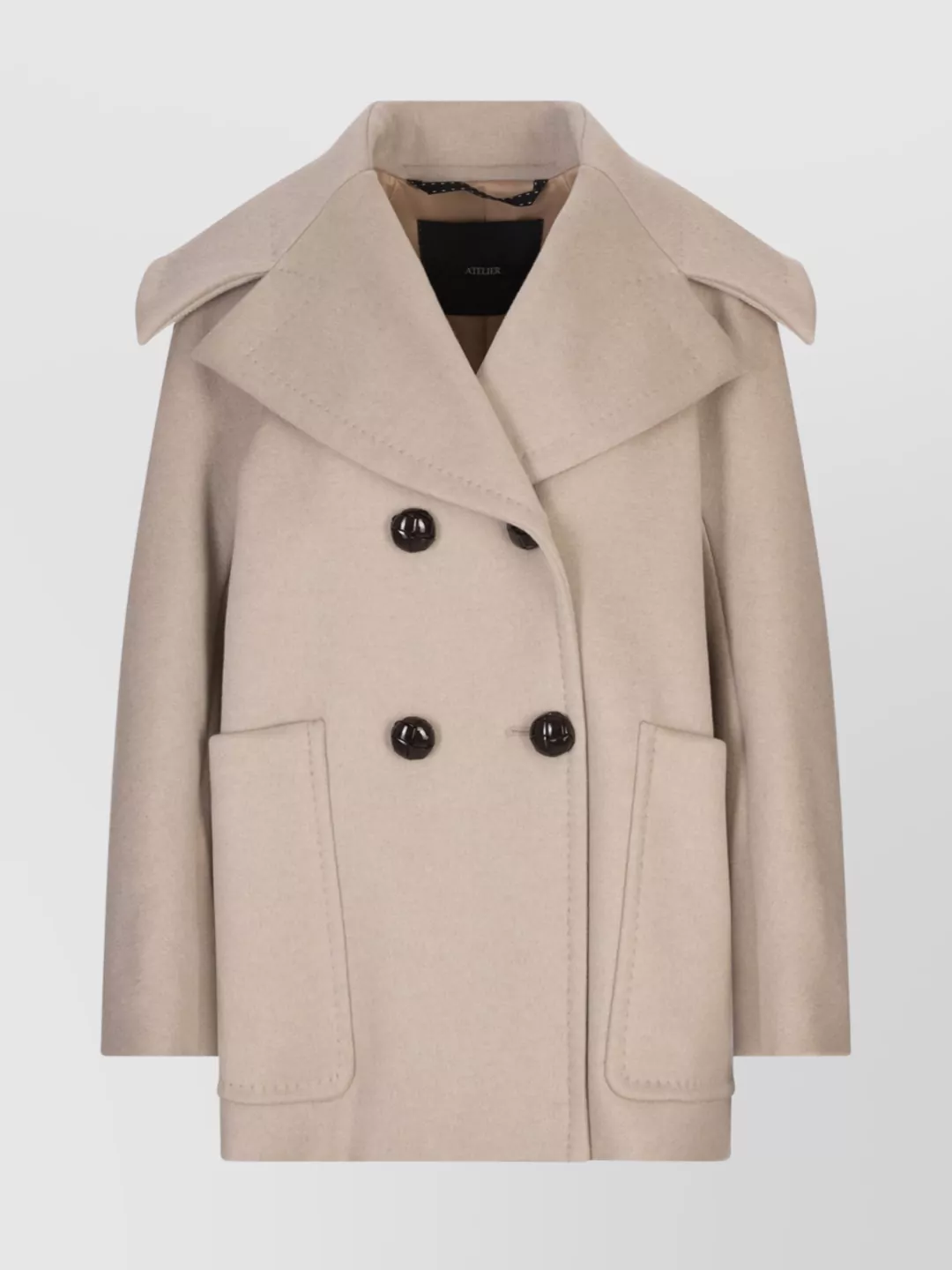 Oversized double-breasted coat with broad shoulders and a roomy, relaxed silhouette through the body and sleeves