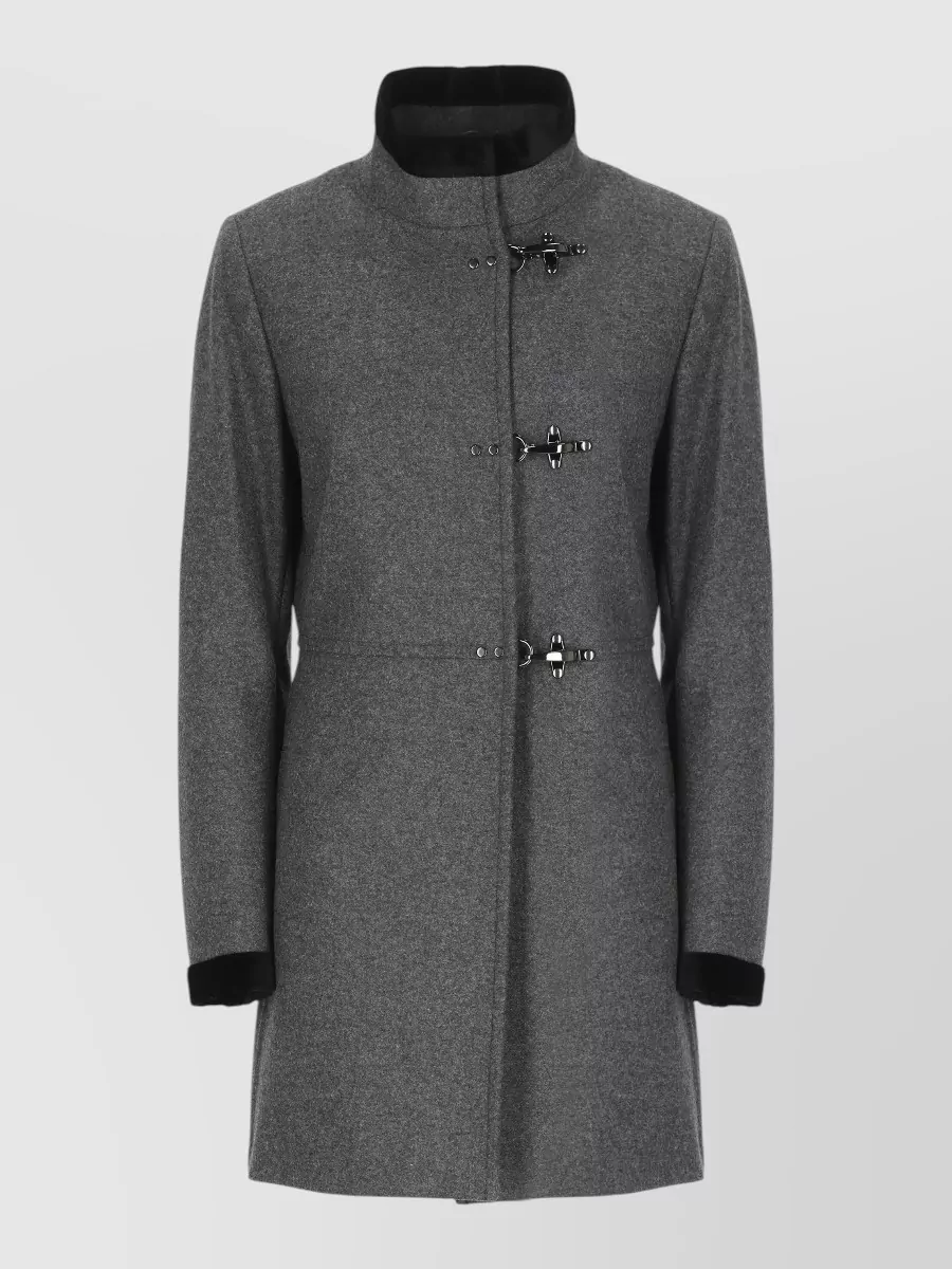 Discover more FAY Coats FAY Clothing CoatsRegular, tailored silhouette through the shoulders and body with a straight fall over the hips and a high neck that sits close to the collarbone