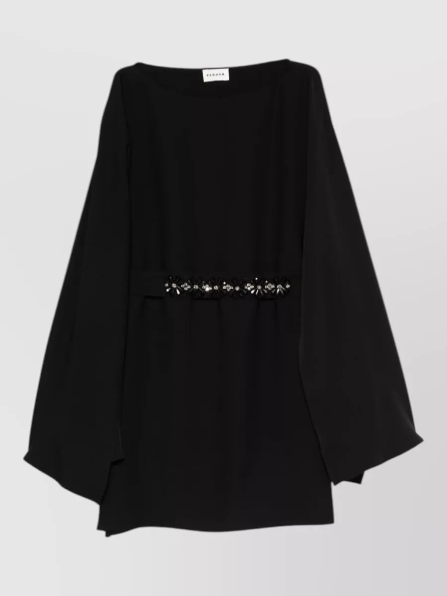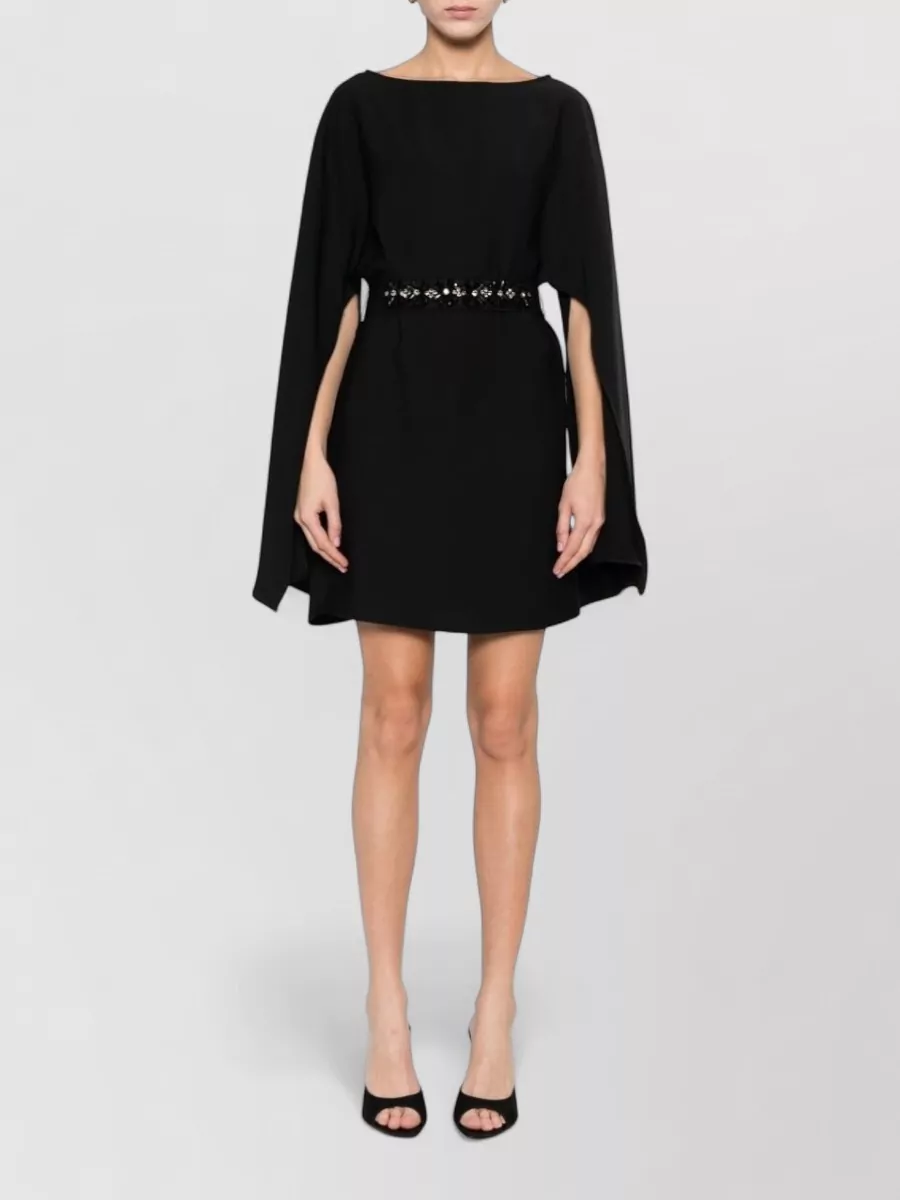 Parosh dress cape sleeves round neckline embellished waist