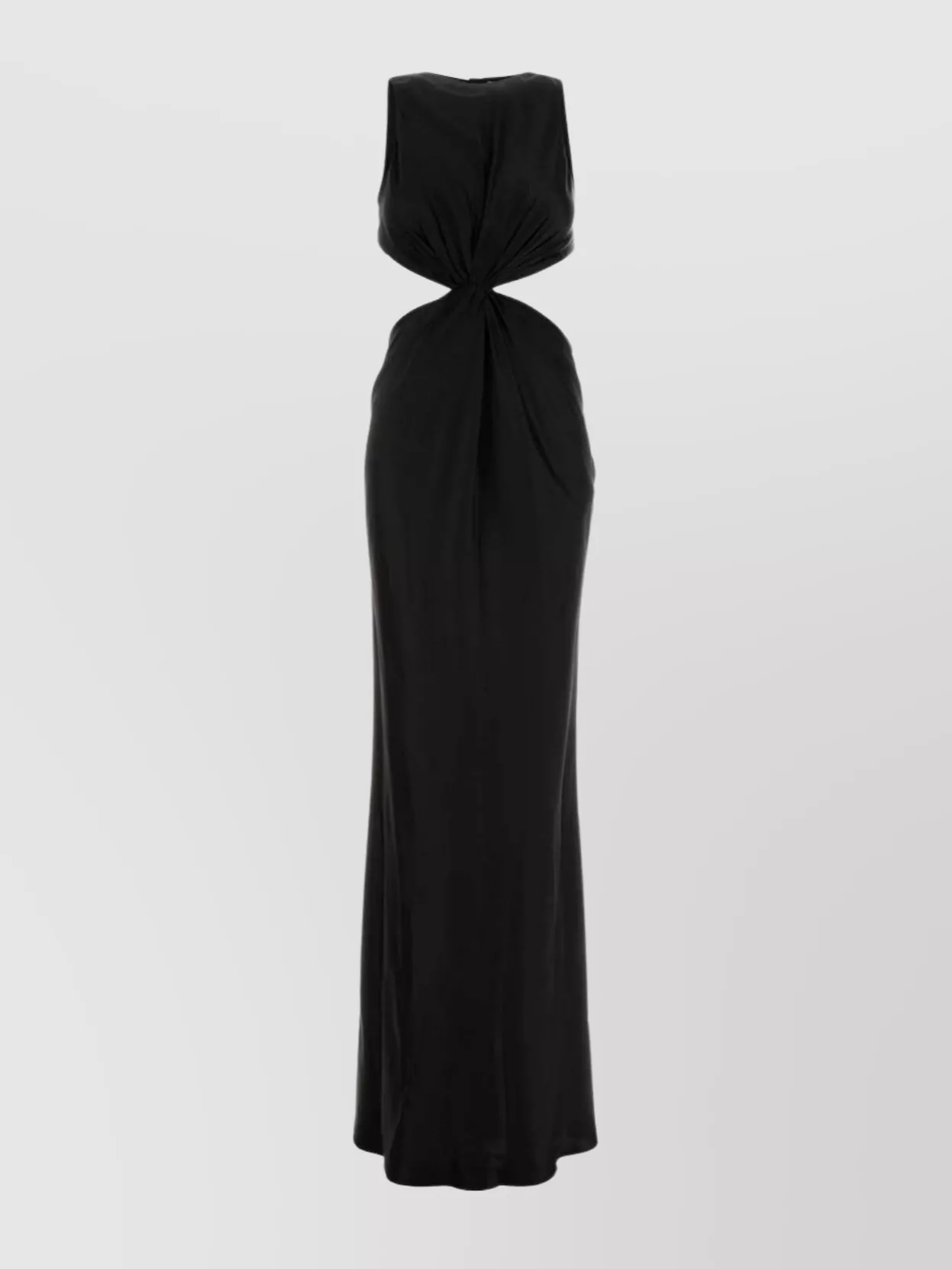 long satin dress with cut-out and knot