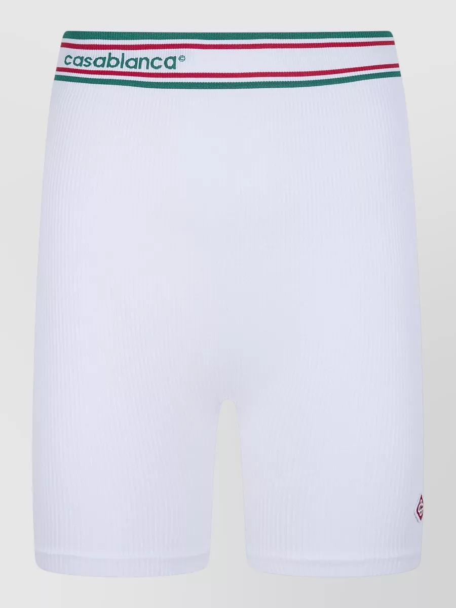 Casablanca striped pattern elastic waist ruffle hem shorts