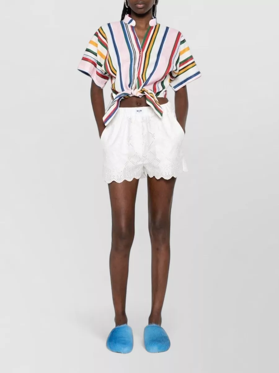 MSGM elastic waistband lace shorts scalloped hem