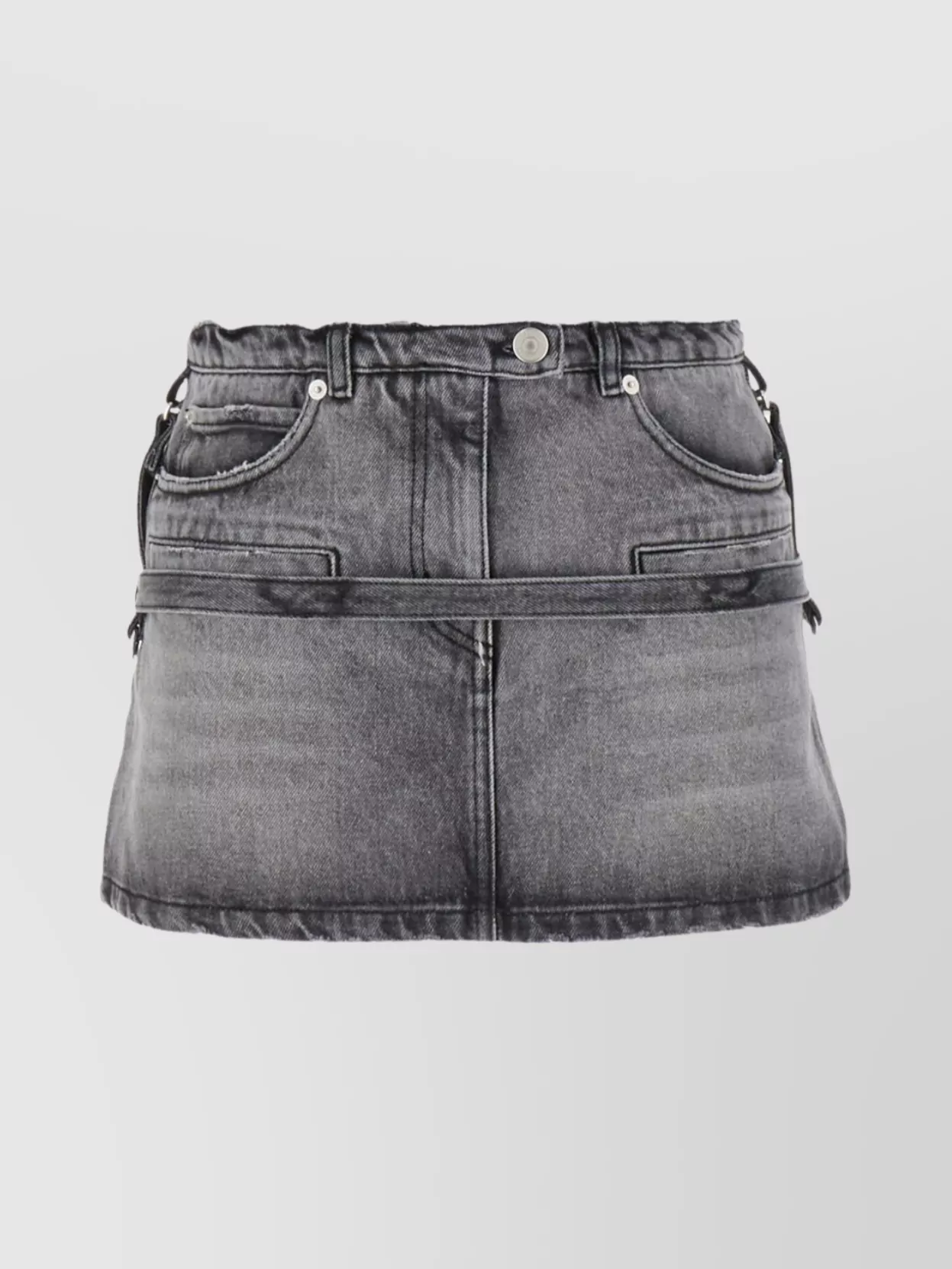 denim mini skirt featuring belt detail