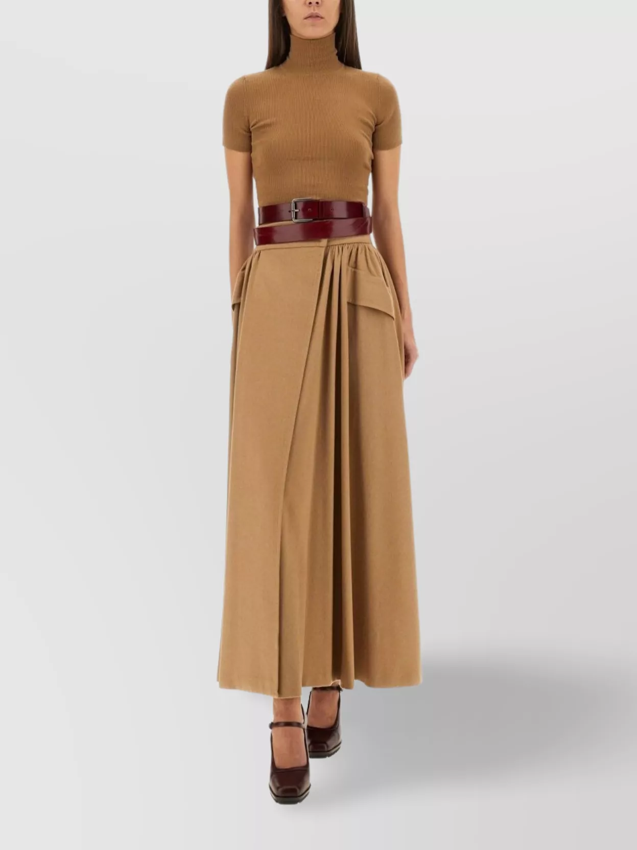 Max Mara 'denver' high-waisted knee-length skirt with front slit and side pockets