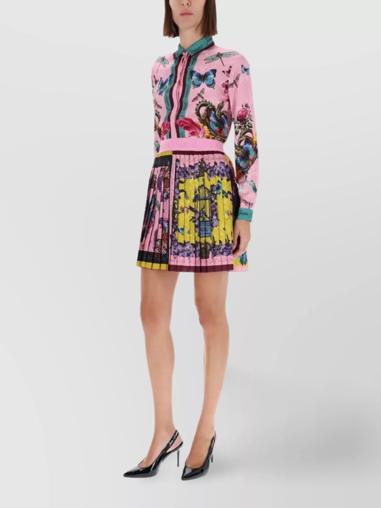 Versace Jeans Couture baroque print pleated skirt with contrast hem