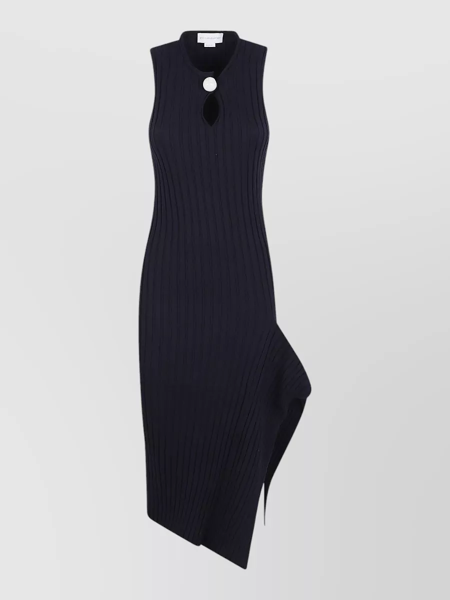 Stella Mccartney ribbed dress asymmetric hem keyhole buttons sleeveless