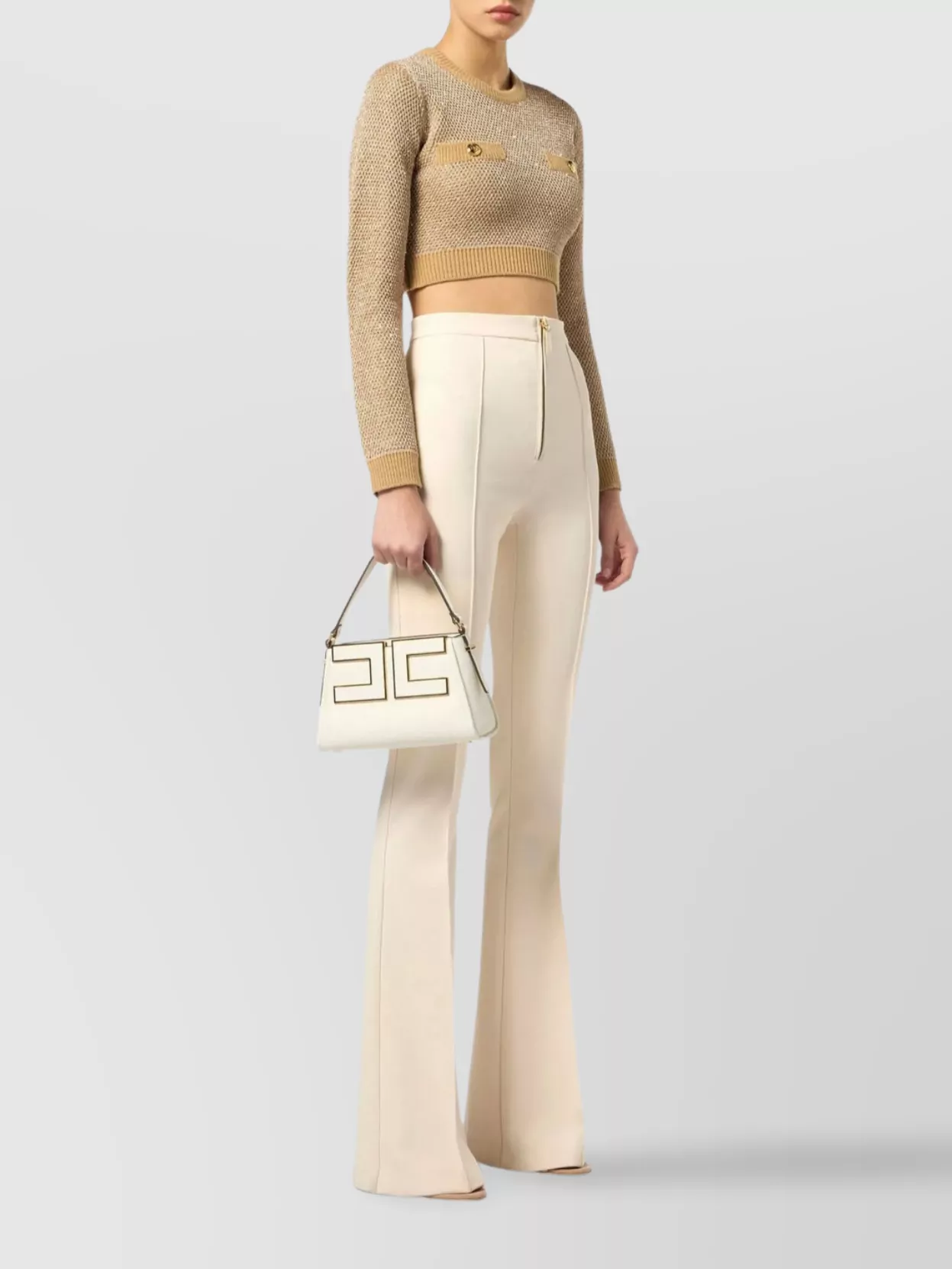 Elisabetta Franchi coffee suit with flare pants and v neck