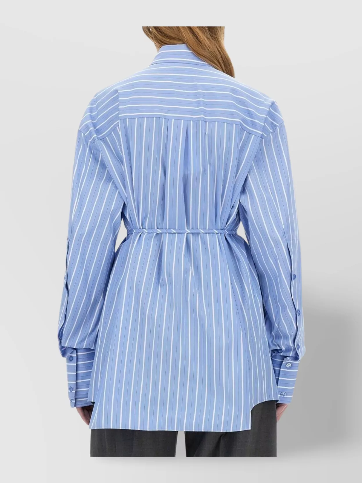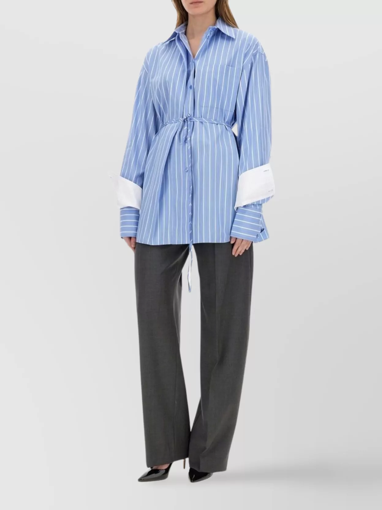 striped oversize shirt with adjustable waist tie