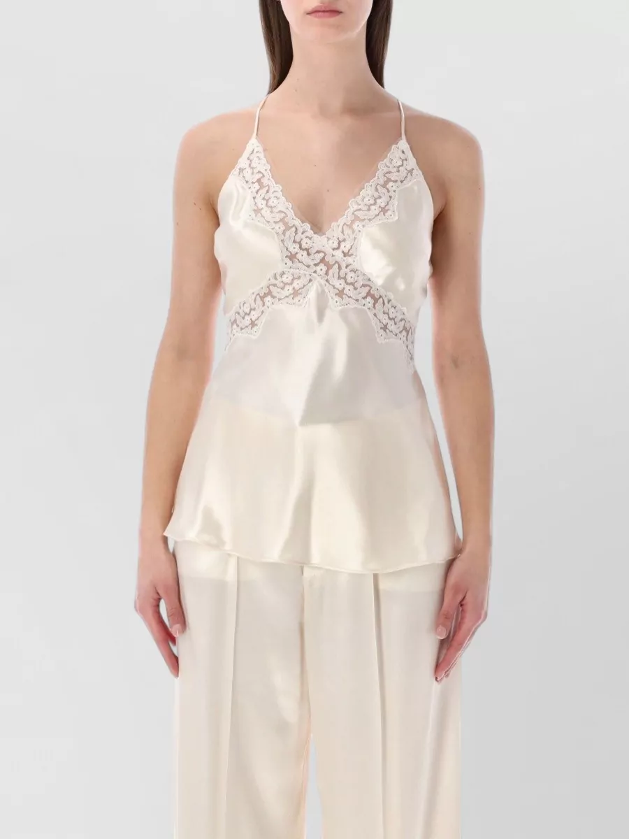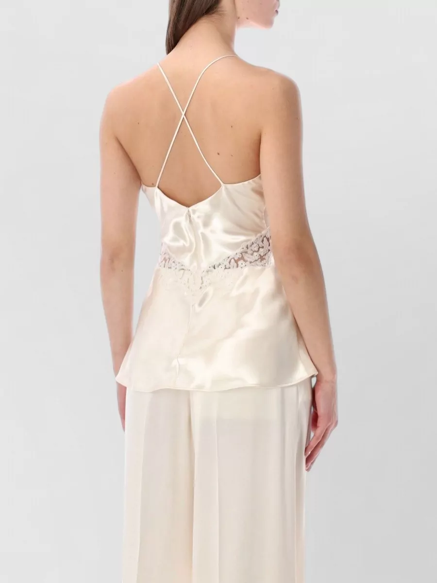 Alberta Ferretti satin top cross back lace straps