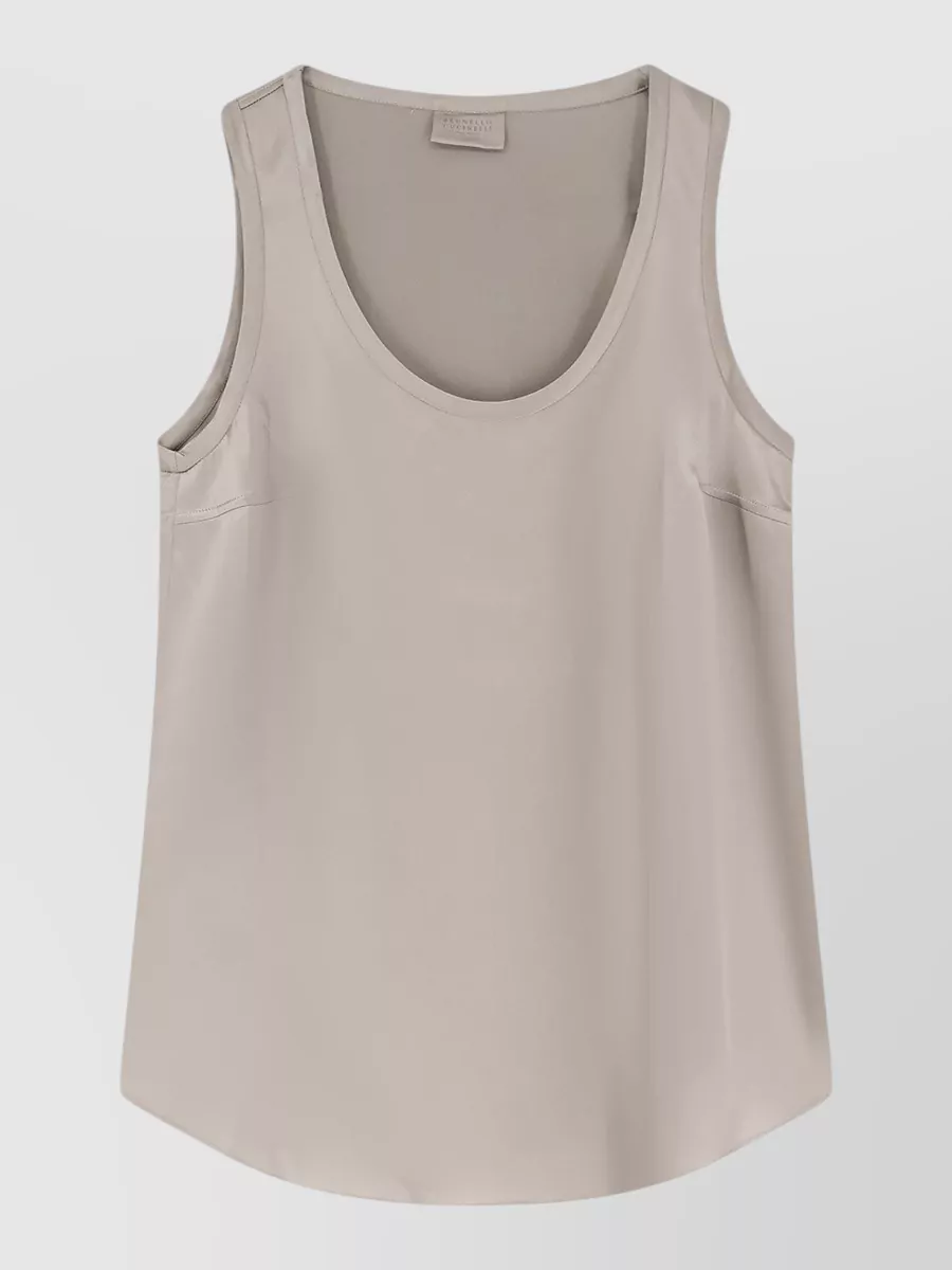 Brunello Cucinelli keyhole back round neck satin finish tops