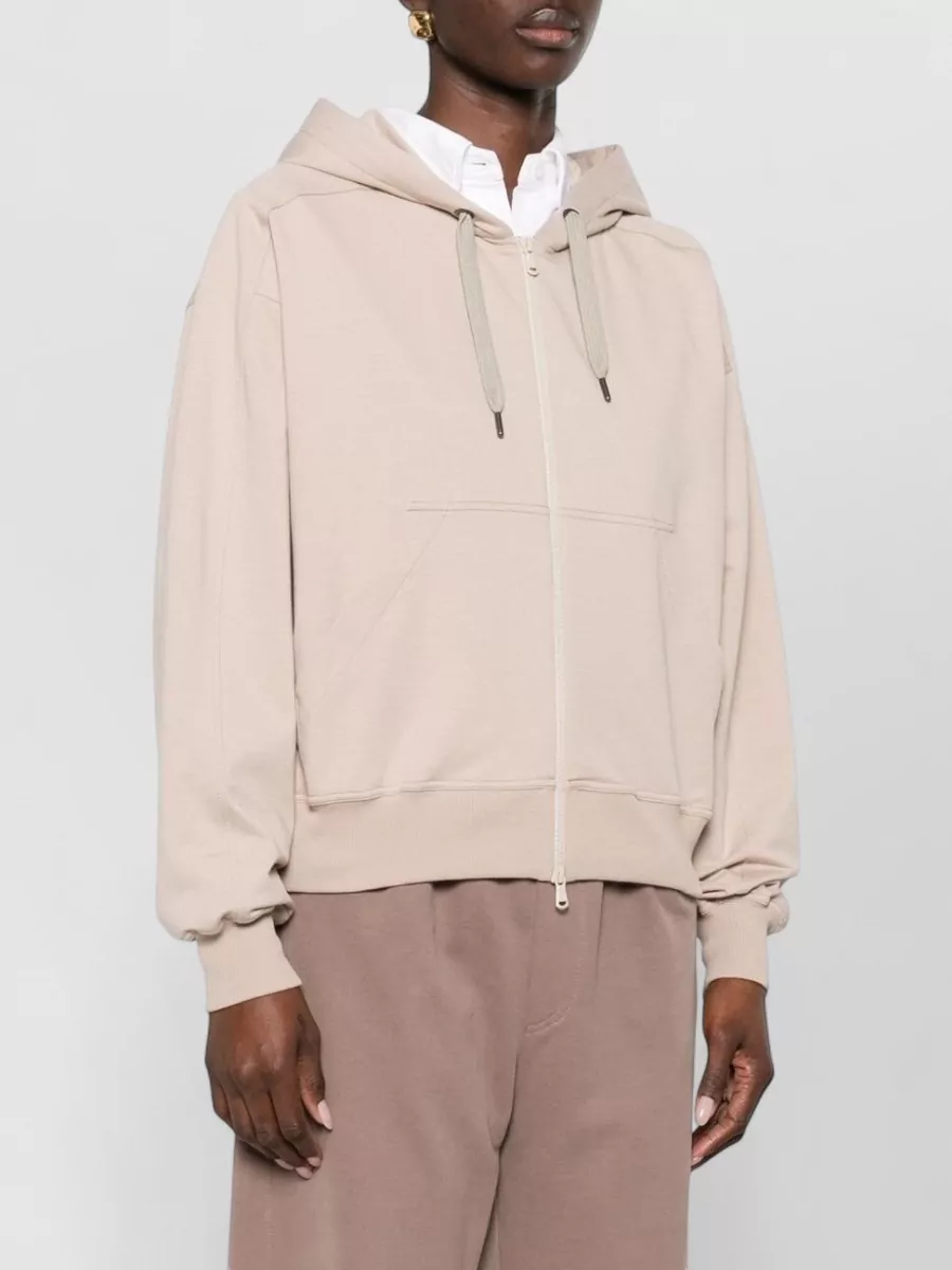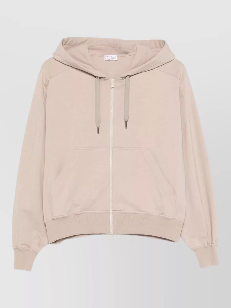 Brunello Cucinelli hooded top with front pockets and ribbed finish