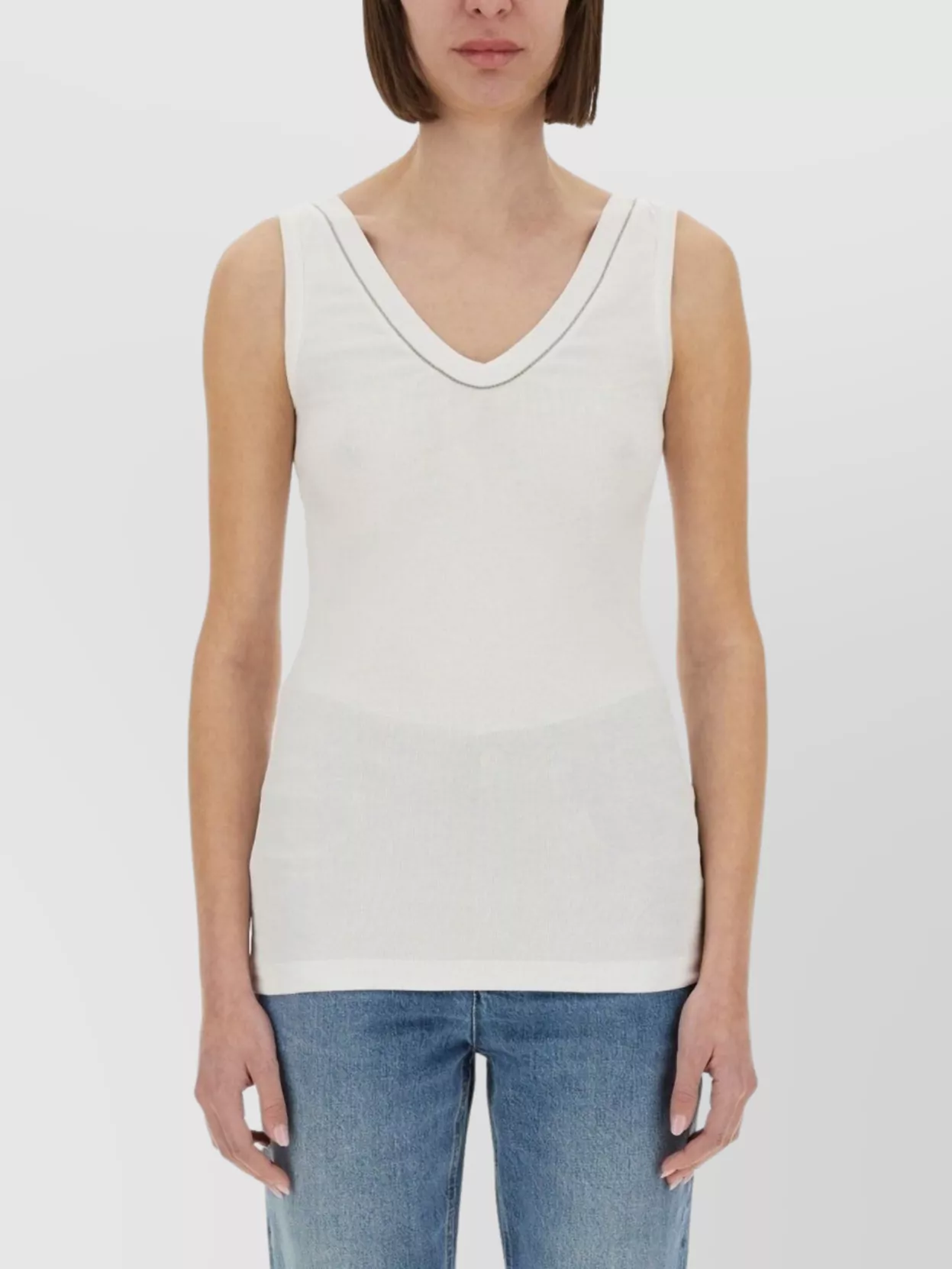 sleeveless stretch cotton poplin shirt with contrast stitching