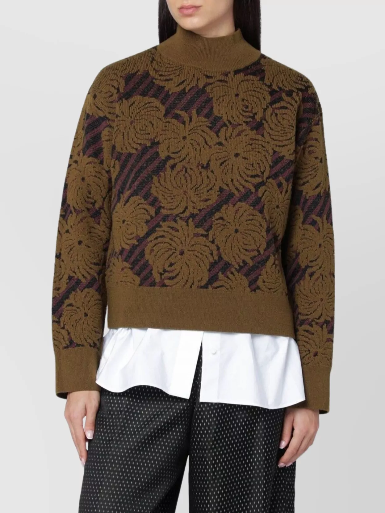 Dries Van Noten asymmetric hem long sleeve patterned top