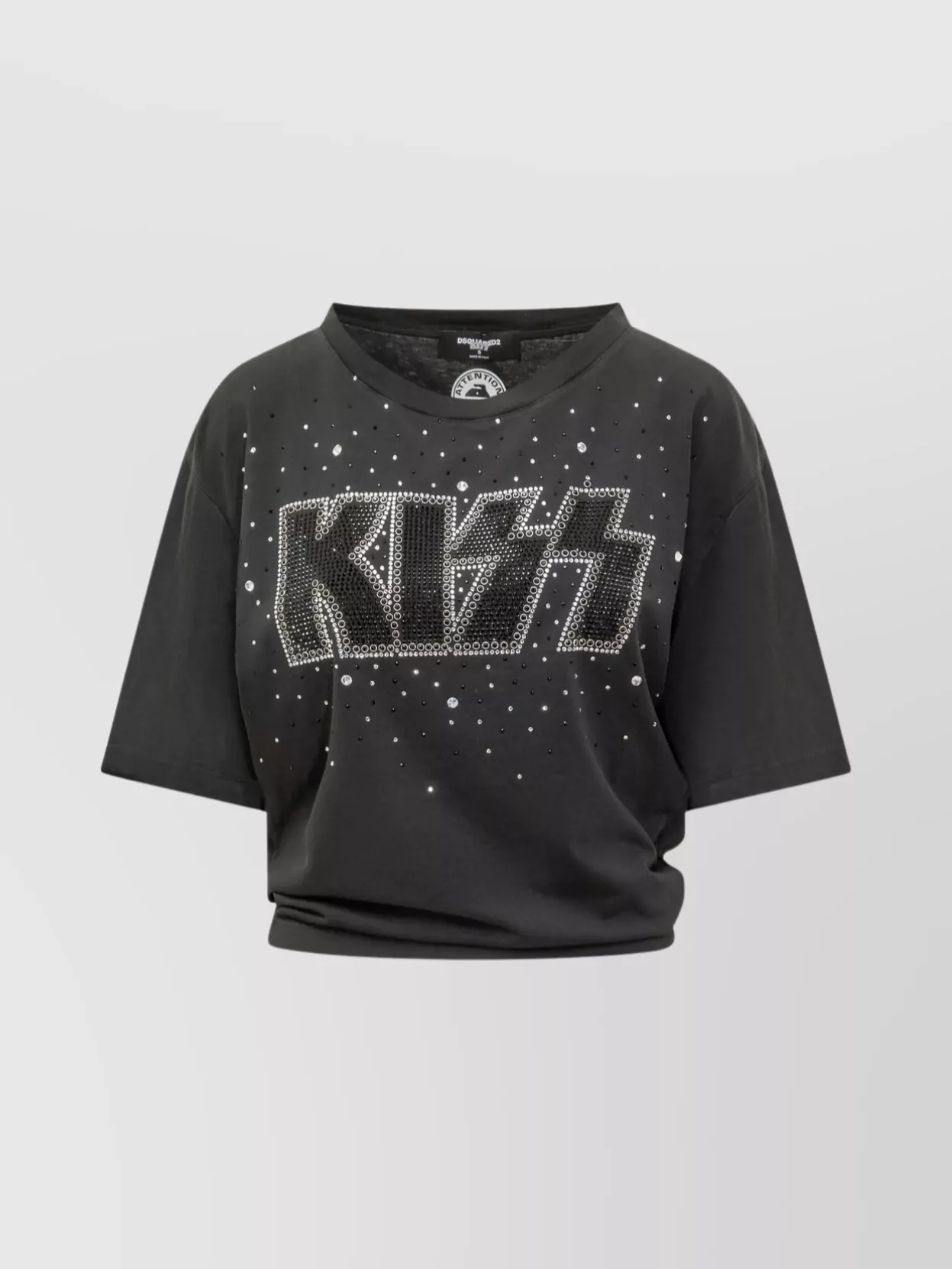 Dsquared2 cotton crew-neck t-shirt with beaded print and fringe detail