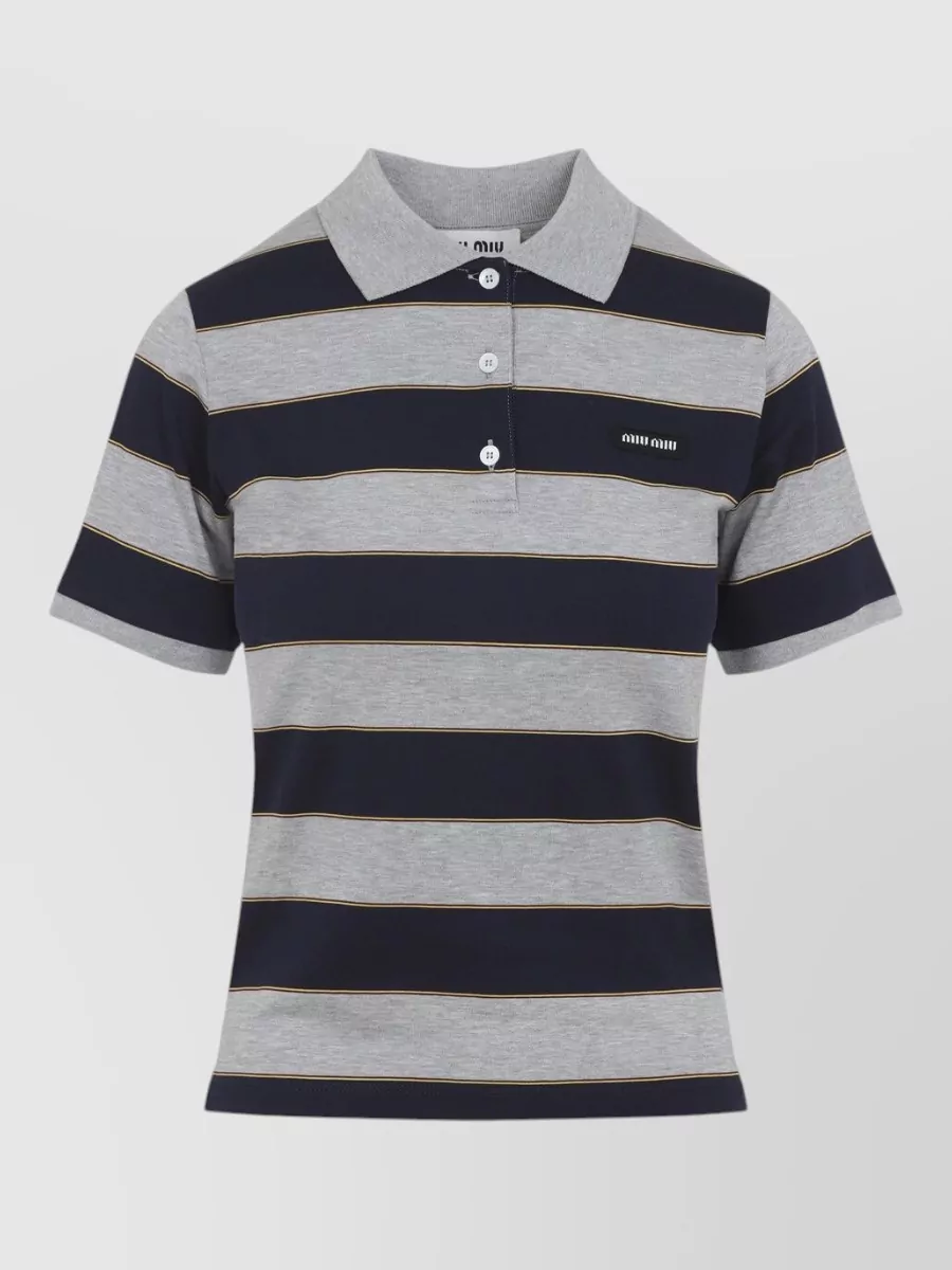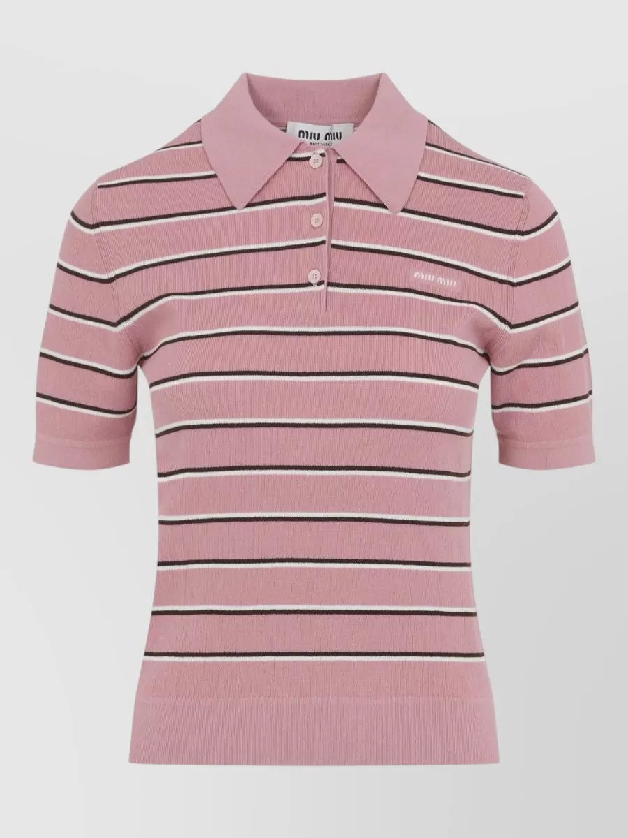 Miu Miu wool polo shirt with argyle pattern and ribbed hem