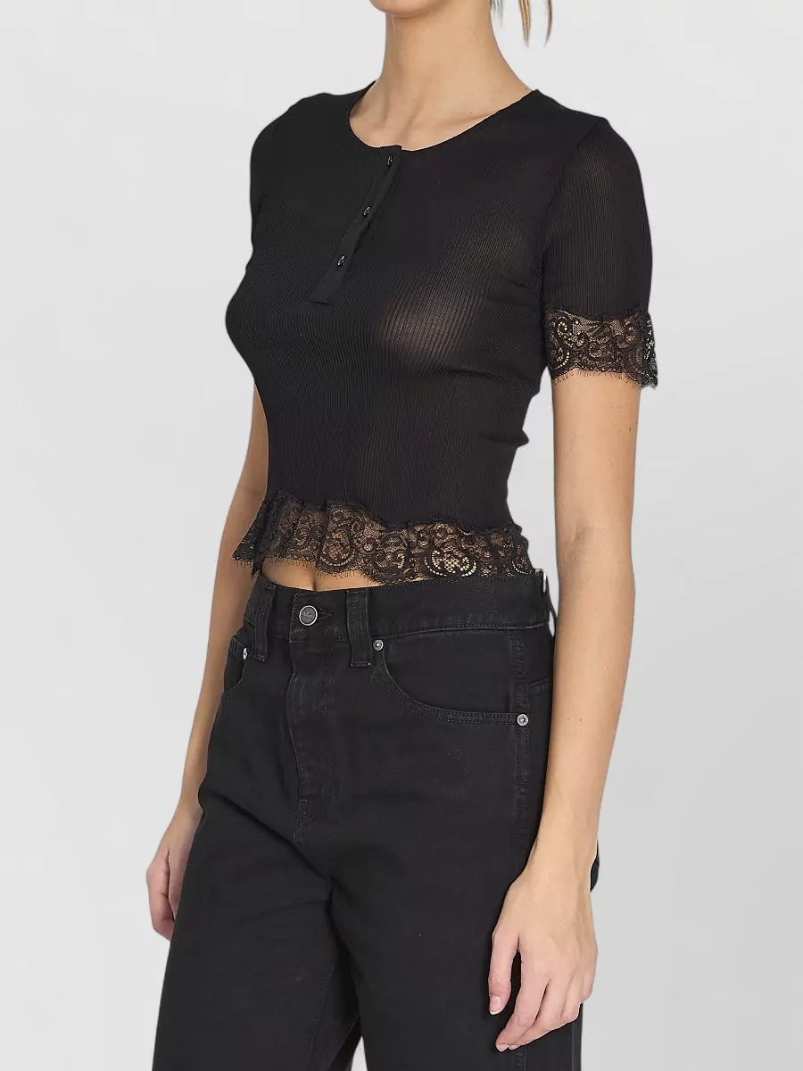 Saint Laurent silk ribbed lace-trim henley t-shirt