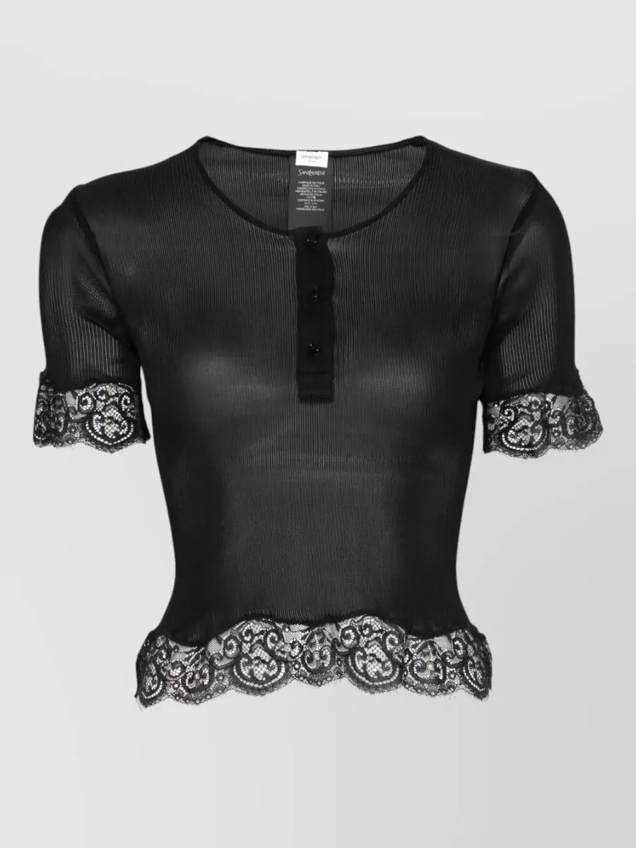 Saint Laurent sheer silk blend blouse with ruffled neckline